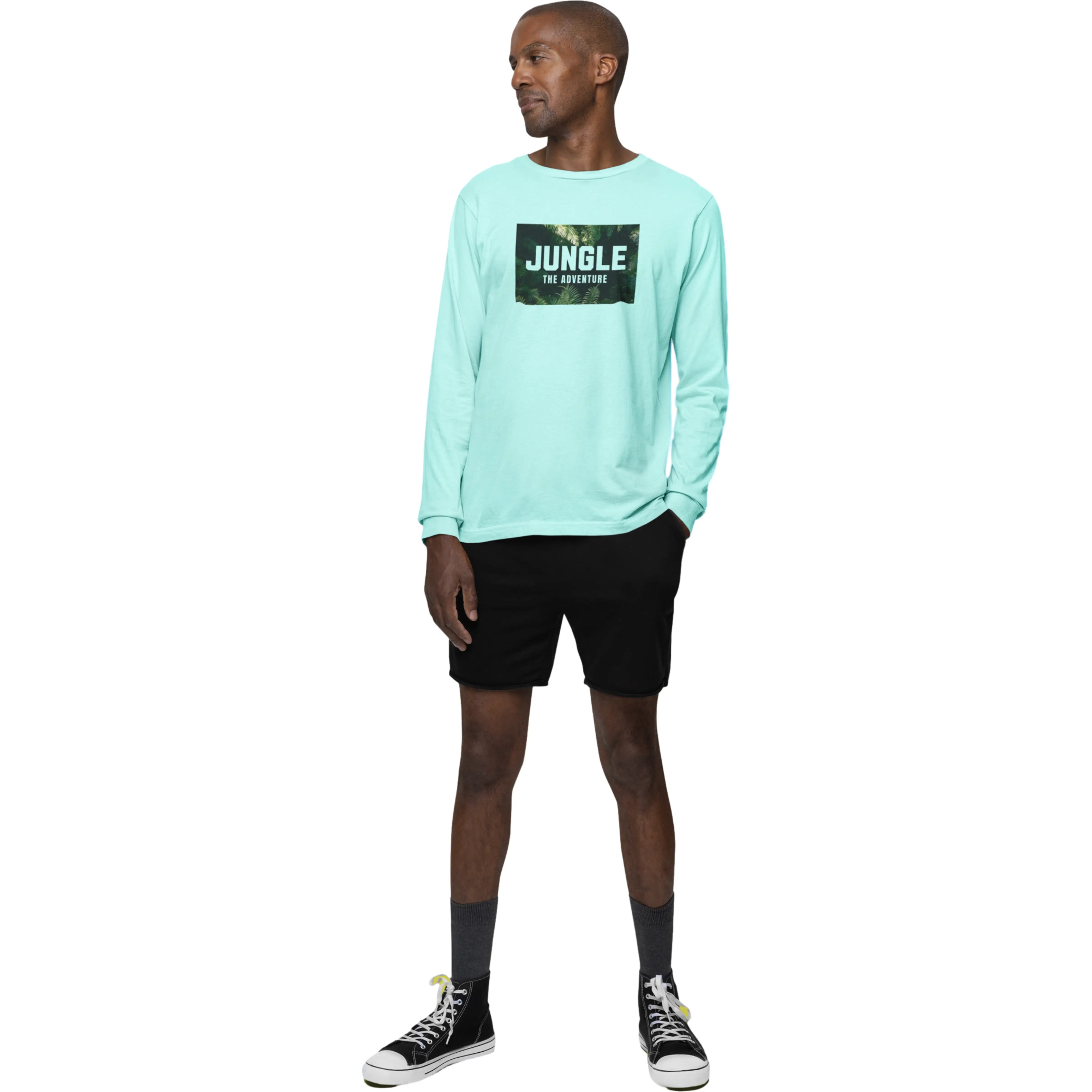 Step into the wild with this mint green full-sleeve T-shirt inspired by nature’s calm. Its round neck and regular fit ensure comfort, while the “Jungle” design brings an adventurous, free-spirited touch to your everyday casual look.