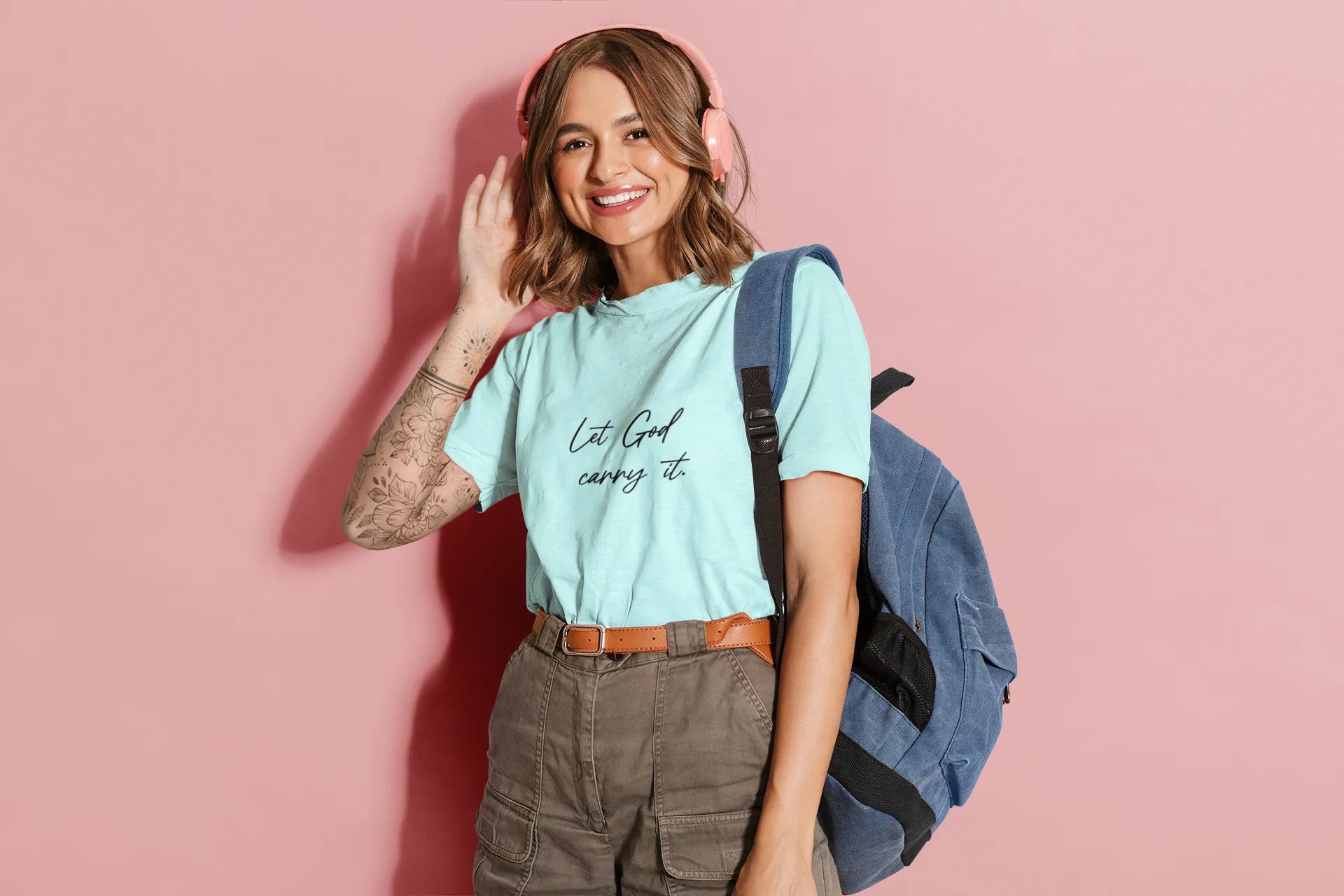 This T-shirt design gently reminds you to let God carry it. With peaceful tones and uplifting typography, it reflects trust, surrender, and faith. Perfect for hearts learning to release burdens and lean into divine strength. Quietly powerful, spiritually grounding.
