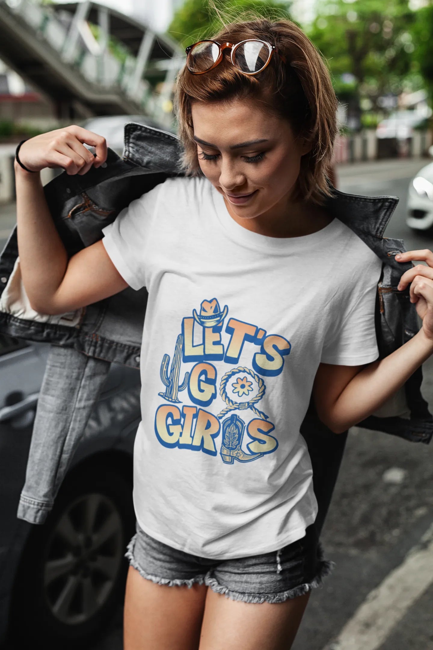 A fun and empowering T-shirt design featuring the phrase “Let’s Go Girls” in bold, playful typography. Accented with stars, lightning bolts, or glitter effects, it radiates confidence and unity — perfect for girls' trips, concerts, or celebrating unstoppable female energy.