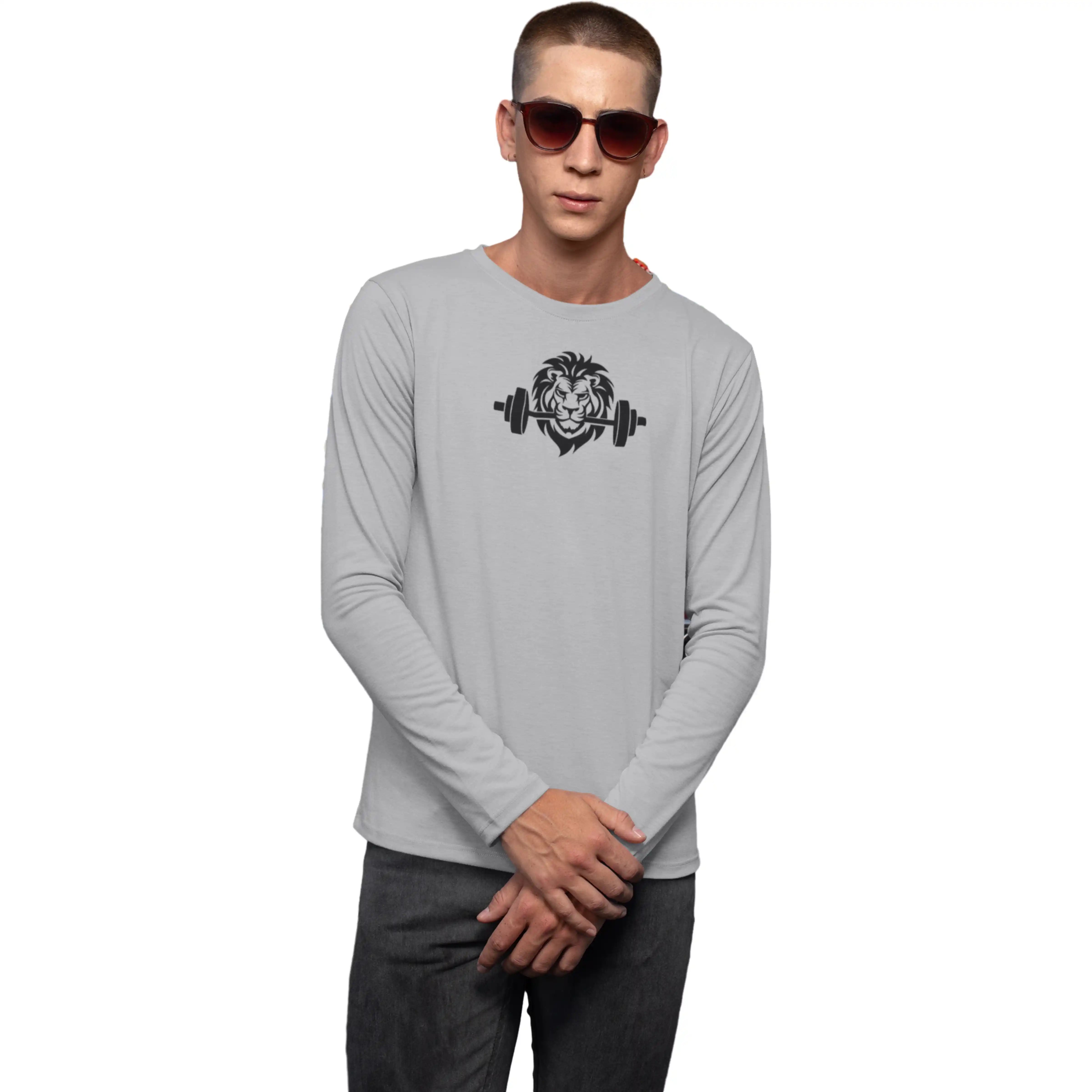 Rule your day with this grey melange “Lion” t-shirt. Symbolizing strength and courage, it features full sleeves and a perfect regular fit for bold personalities.