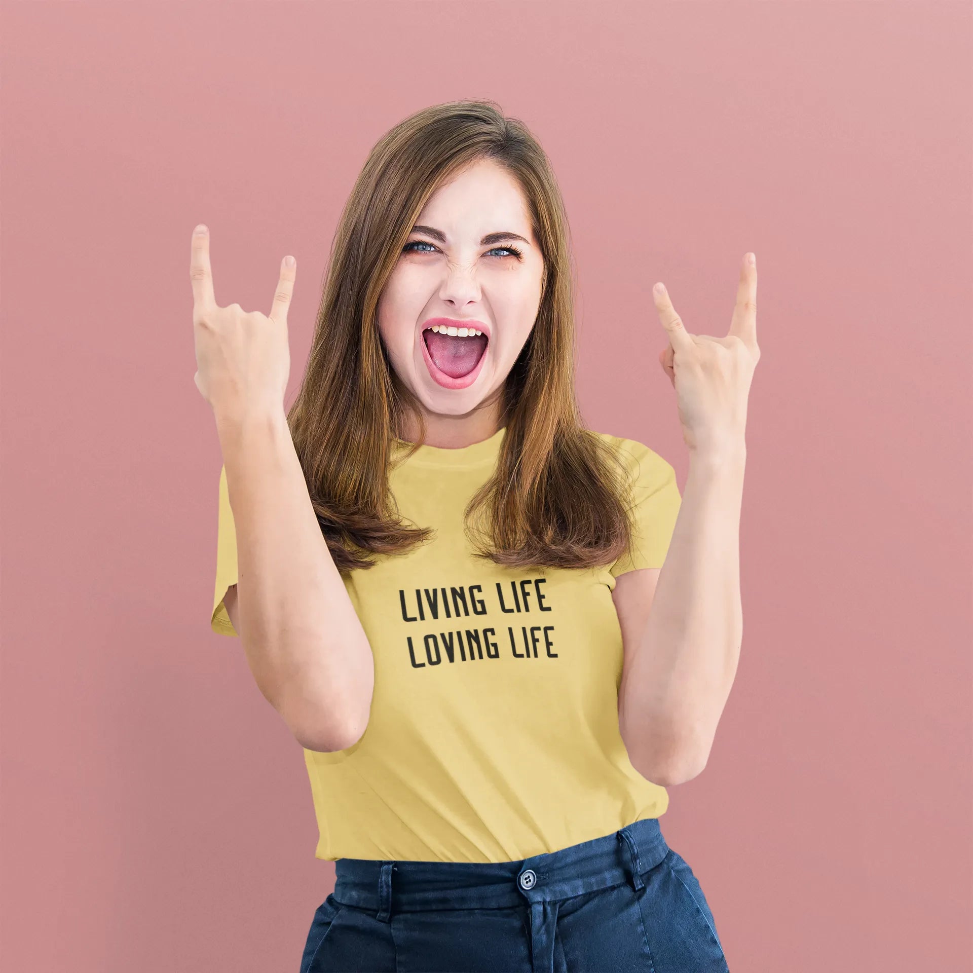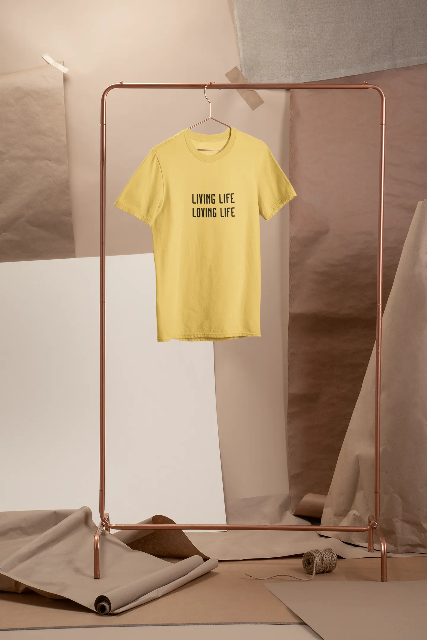 Celebrate every moment with this "Living Life Loving Life" t-shirt. Designed with uplifting typography and vibrant vibes, it’s perfect for those who embrace positivity and joy. A daily reminder to cherish the present and live with a full heart.