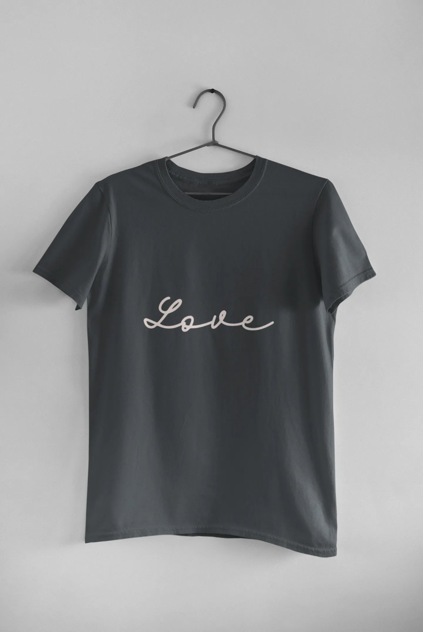 A timeless T-shirt design showcasing the word “Love” in elegant, flowing typography. Soft colors and subtle details create a warm, heartfelt vibe. Perfect for spreading positivity, emotional connection, and a reminder of the beauty and power of love in life.
