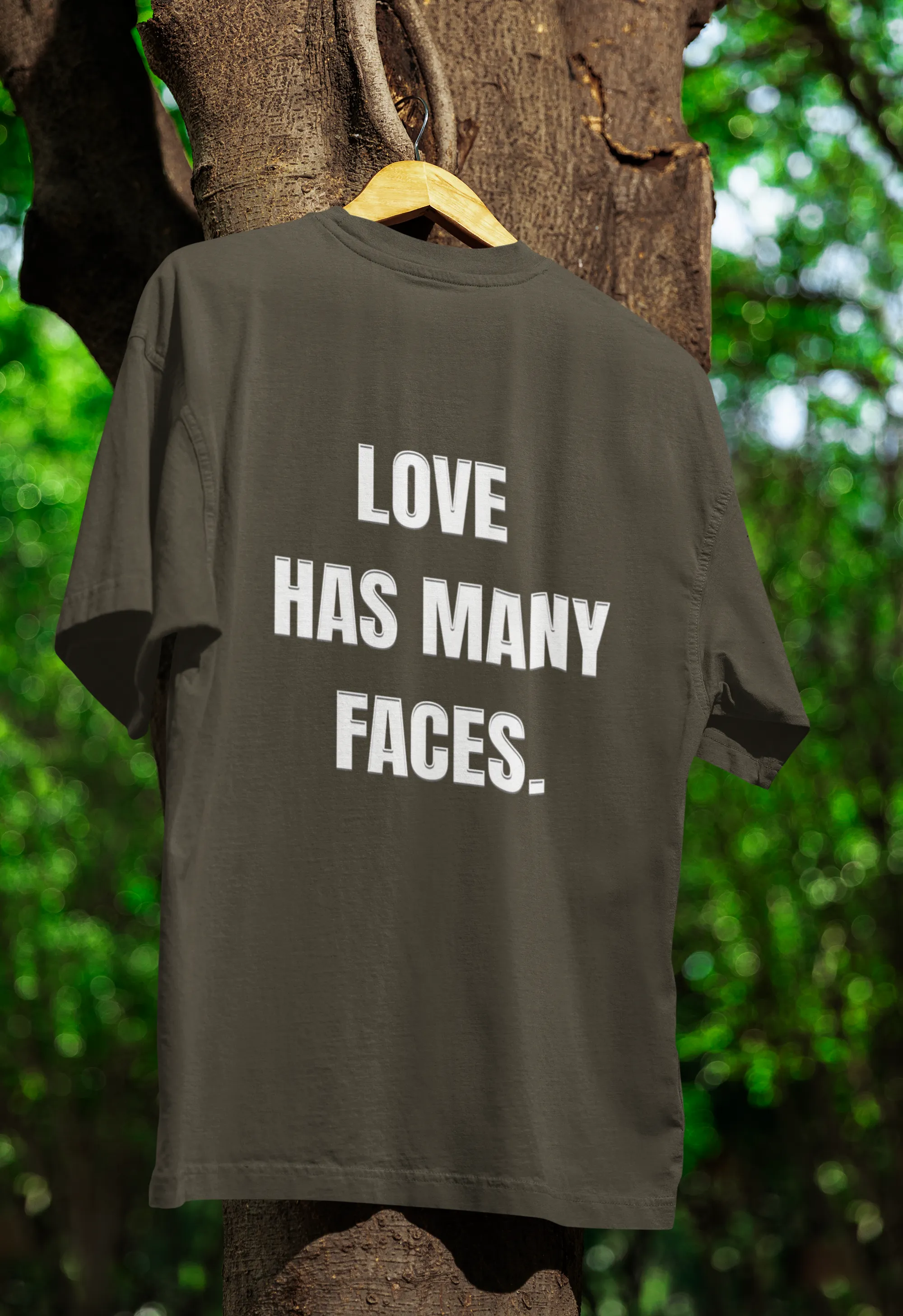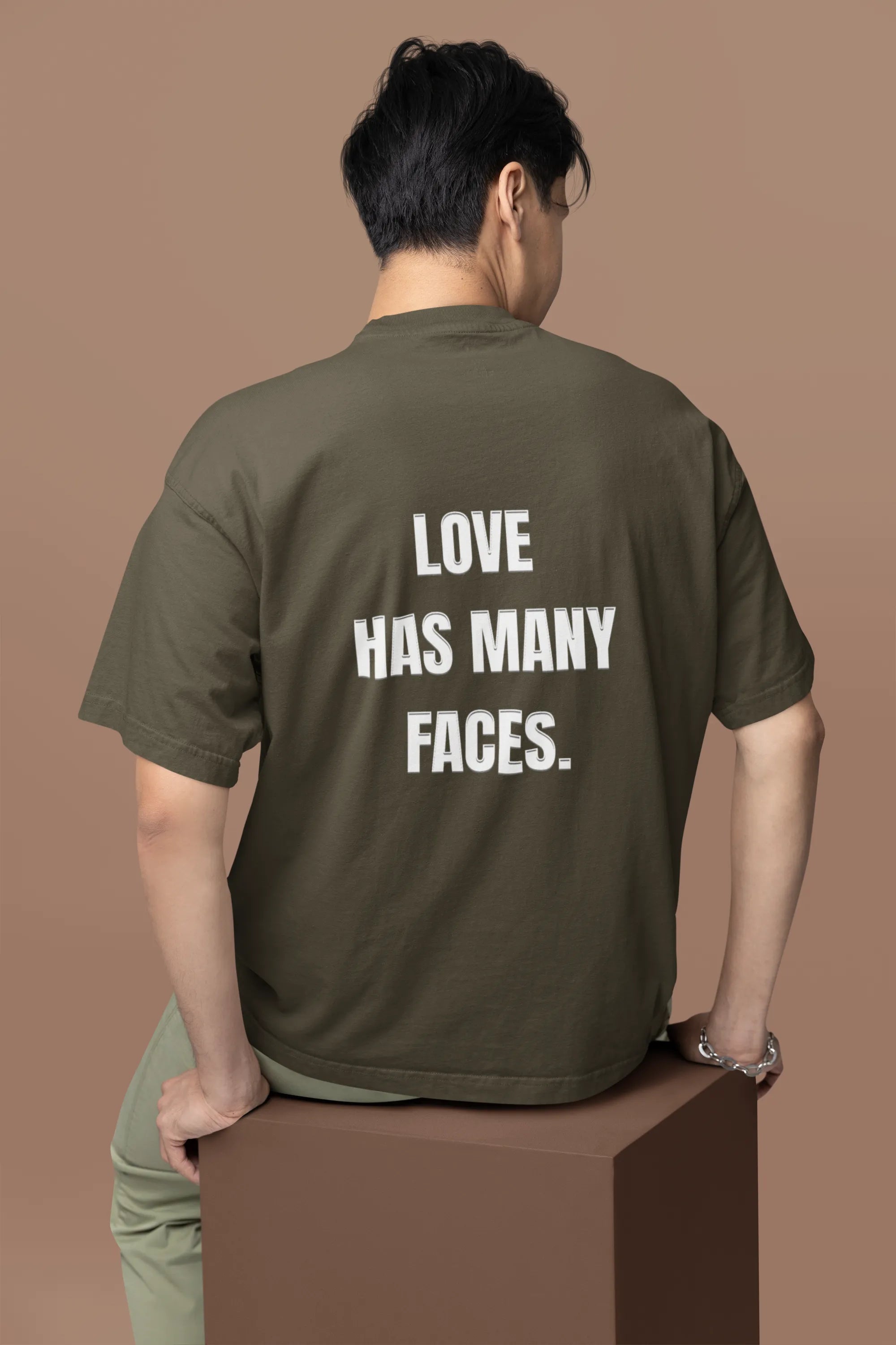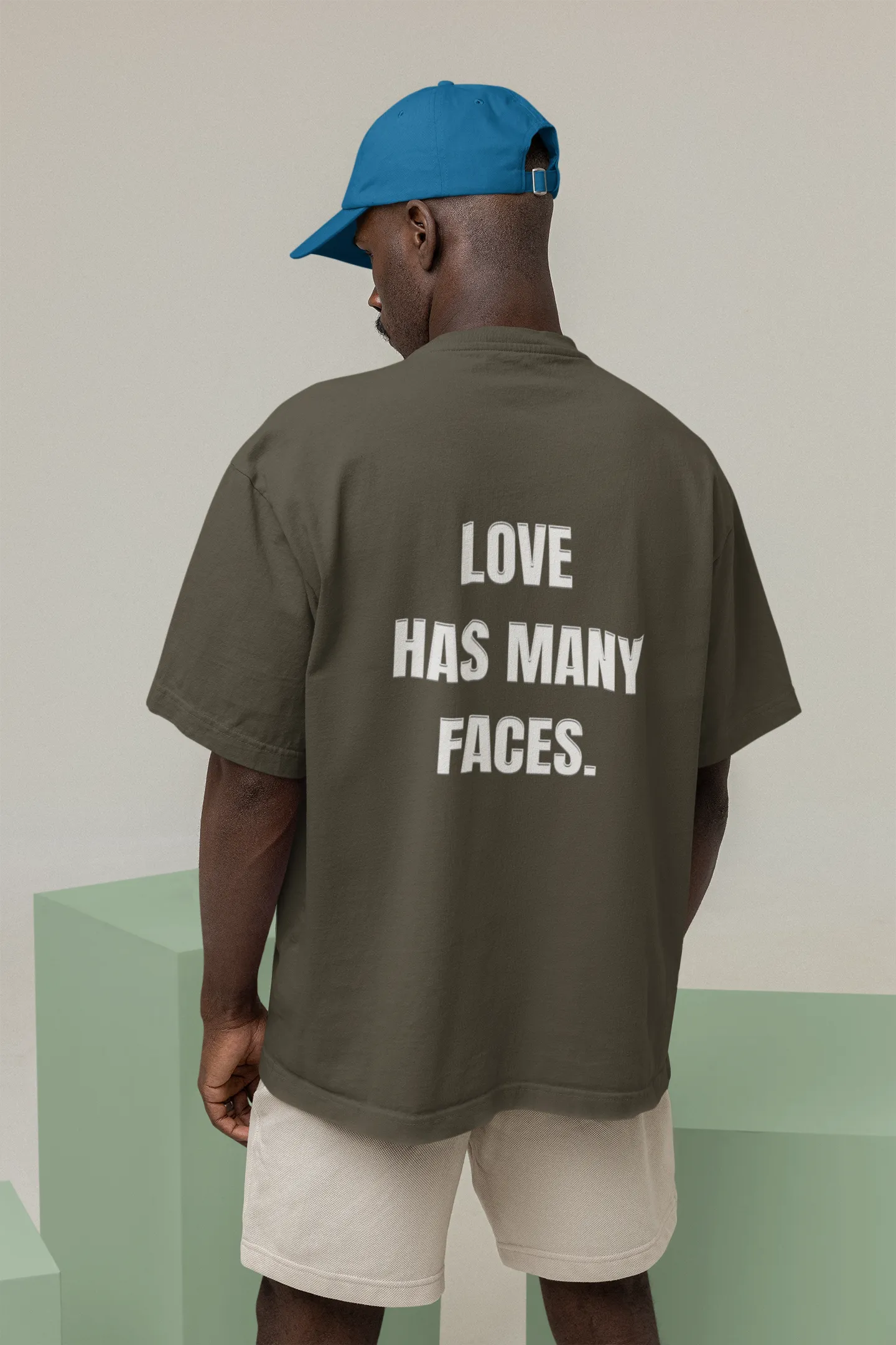 A vibrant, artistic design featuring various abstract representations of love—hearts, faces, and colors intertwined. Perfect for expressing the diverse and universal nature of love. Ideal for a trendy and meaningful T-shirt, conveying emotion and connection in a creative way.