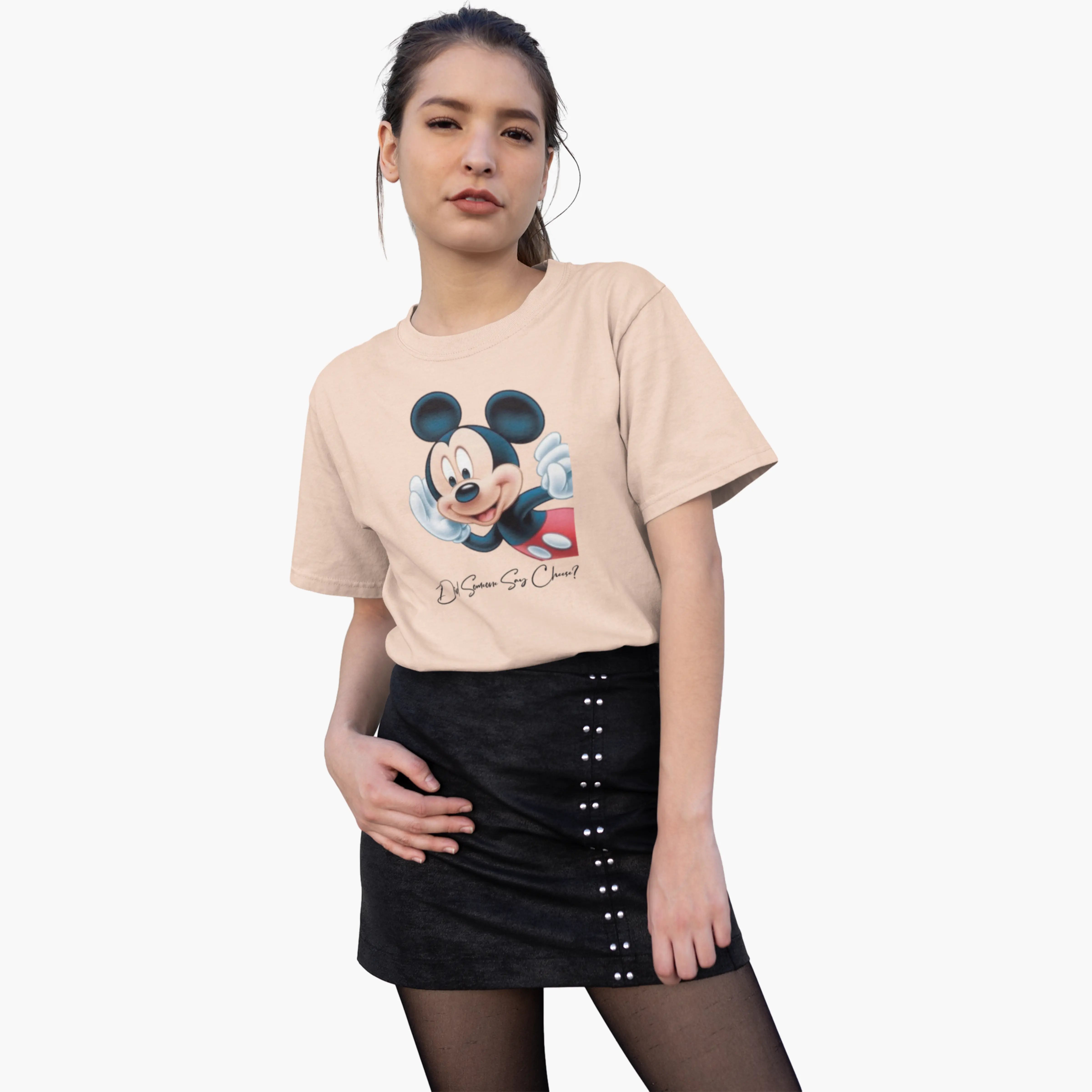 A soft peach t-shirt featuring the iconic Mickey design, bringing playful Disney magic. With a comfortable round neck and regular fit, it’s perfect for casual wear. A cheerful piece for fans who love classic style with a fun twist.