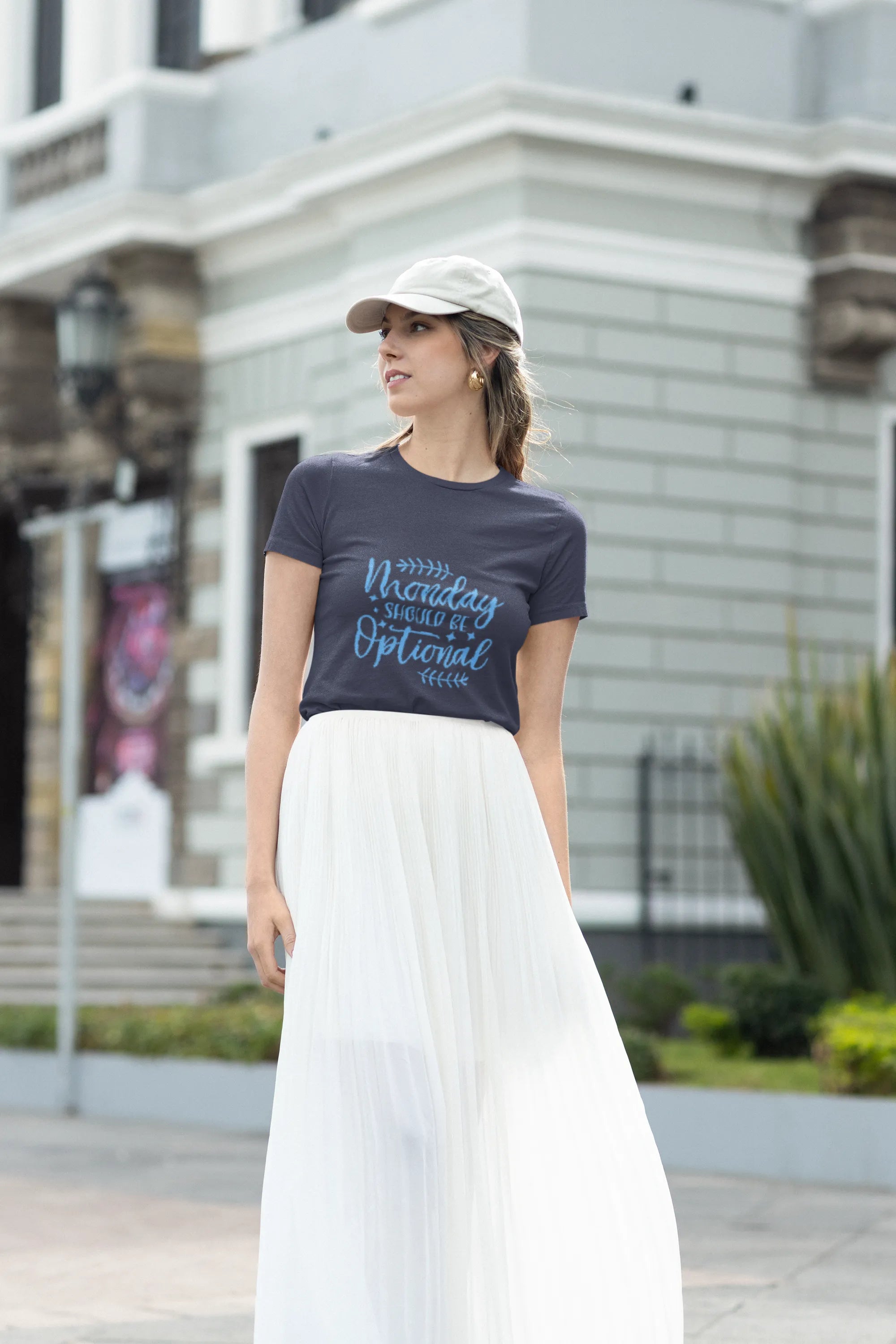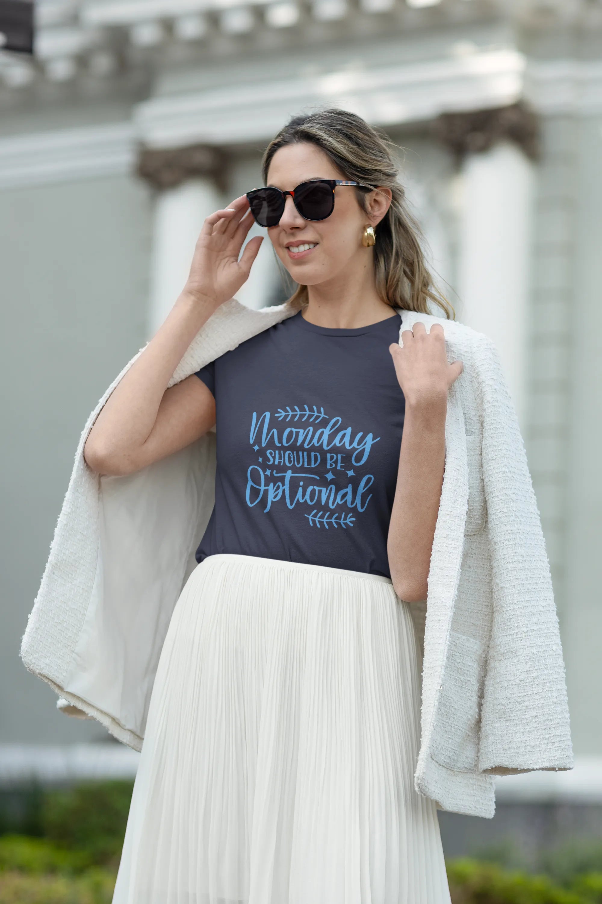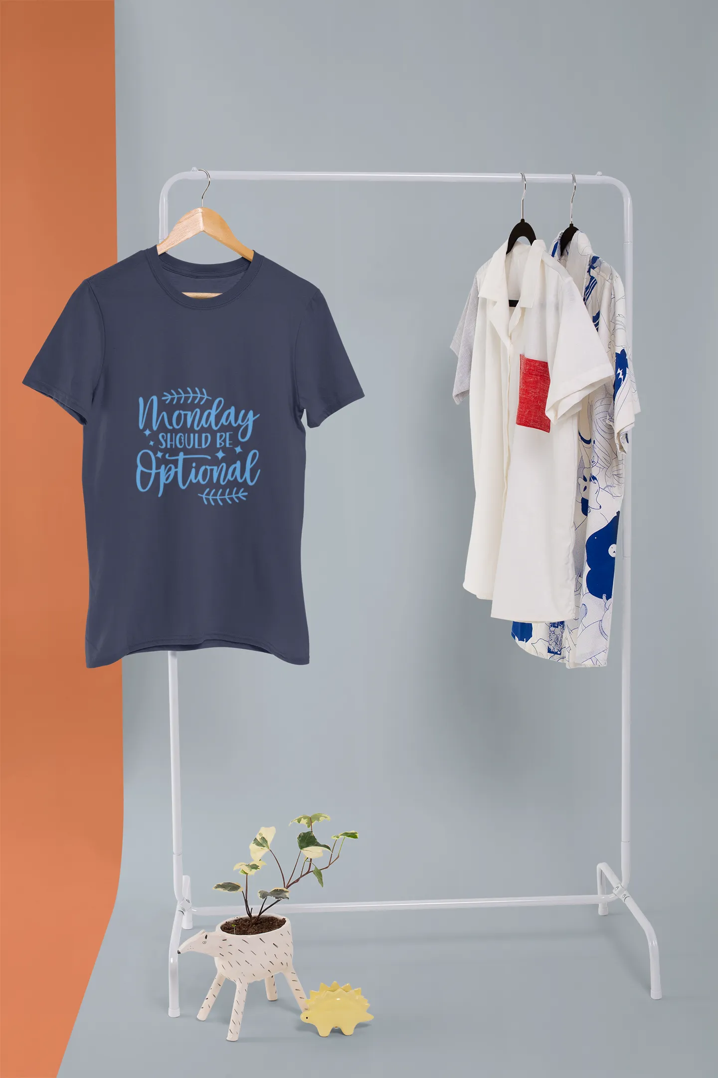 A minimalist t-shirt design featuring playful typography and a chill vibe. "Monday" is styled subtly or optionally removable, making it perfect for everyday wear. Neutral tones and soft fabric ensure comfort while the design keeps it effortlessly cool and versatile.