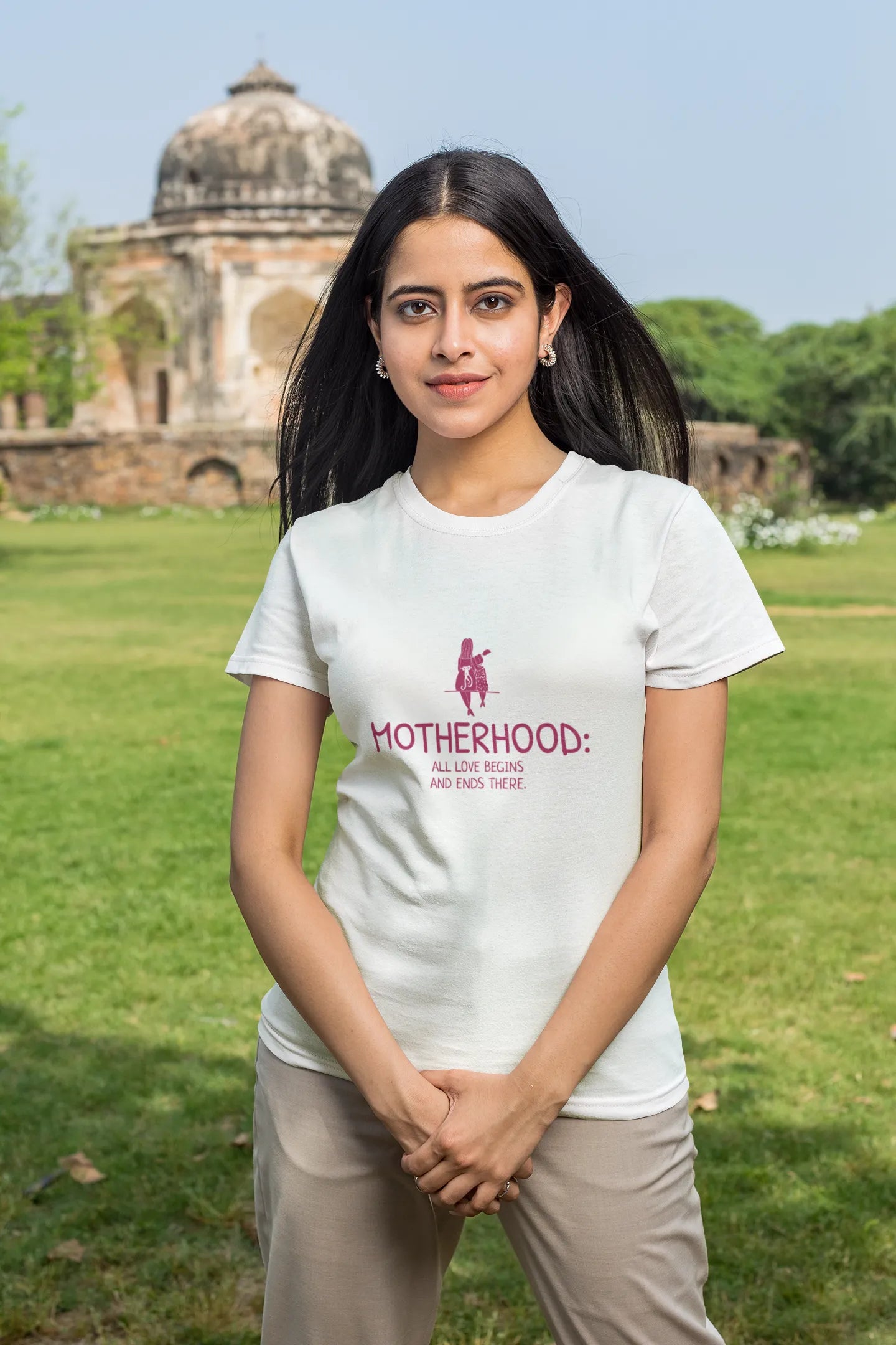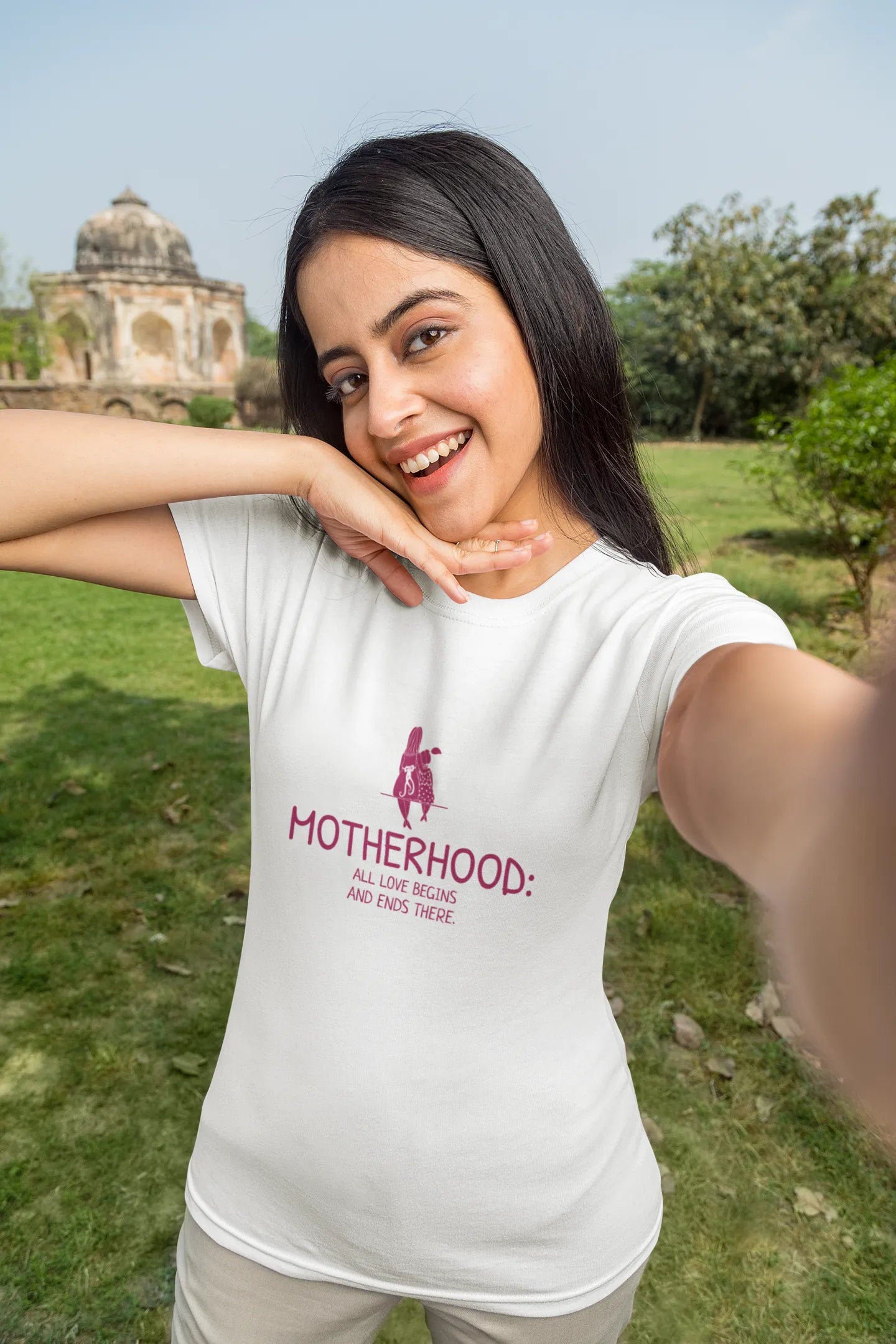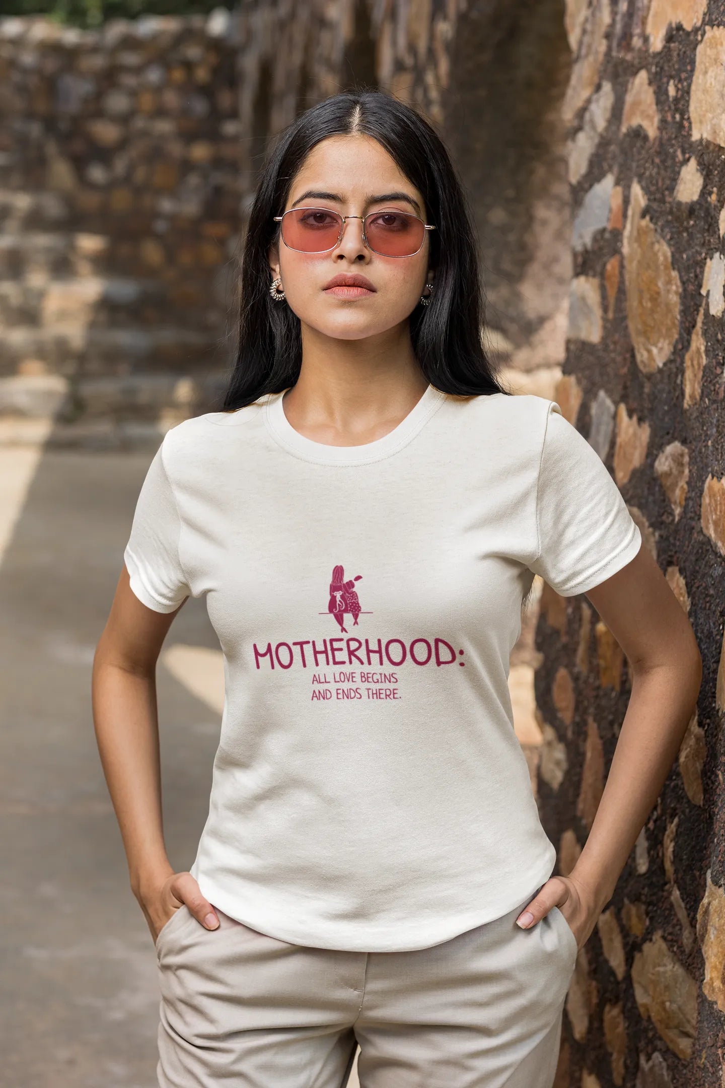 A heartfelt and nurturing T-shirt design featuring the word “Motherhood” in elegant, flowing typography. Accented with soft symbols like hearts, baby footprints, or a mother-child silhouette, it captures the love, strength, and beauty of being a mom — perfect for celebrating the journey of motherhood.