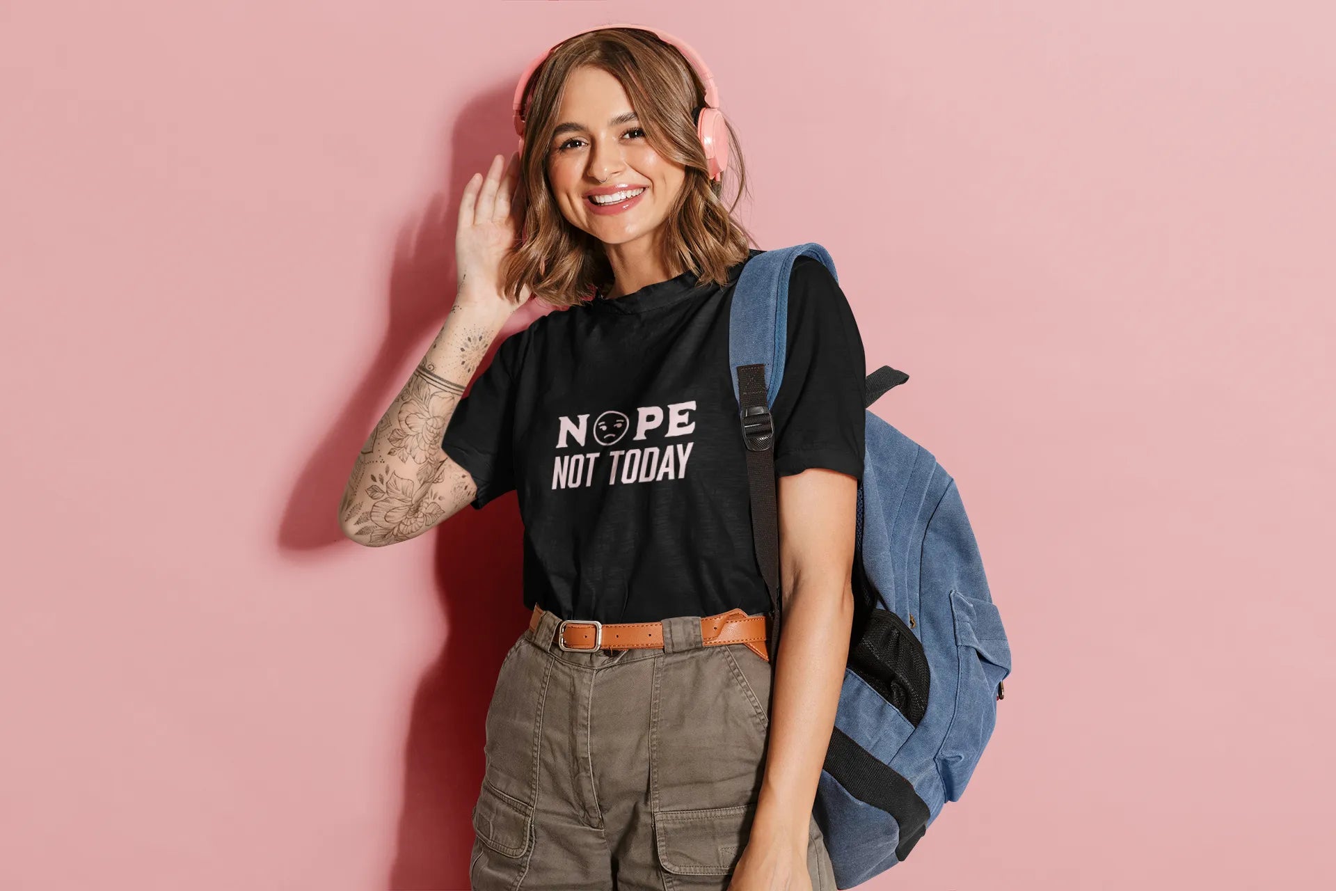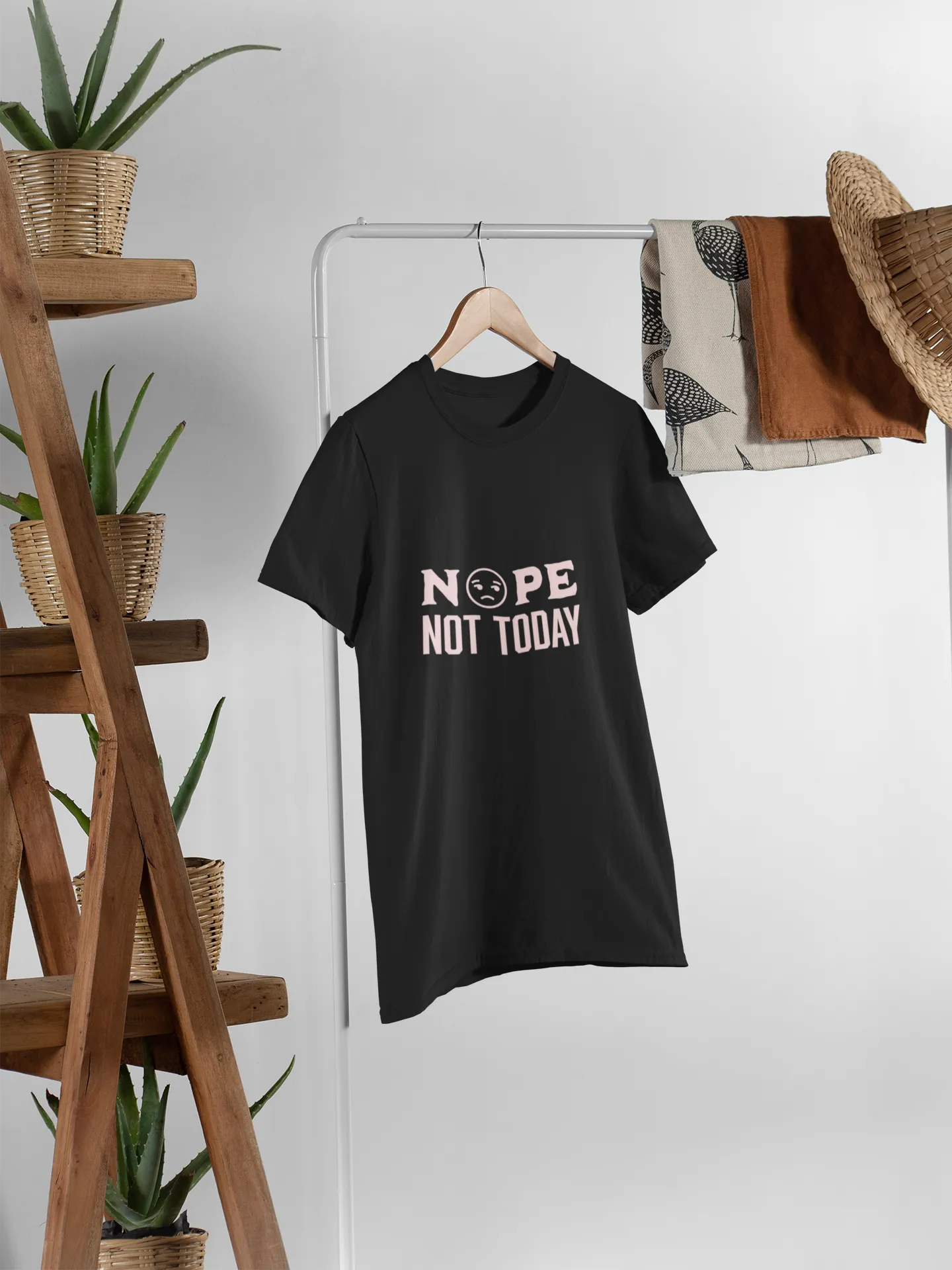 A minimalist t-shirt design featuring the bold phrase "Nope. Not Today" in a clean, modern font. Perfect for lazy days or setting boundaries, this design blends attitude and simplicity with a touch of humor, making a clear statement.