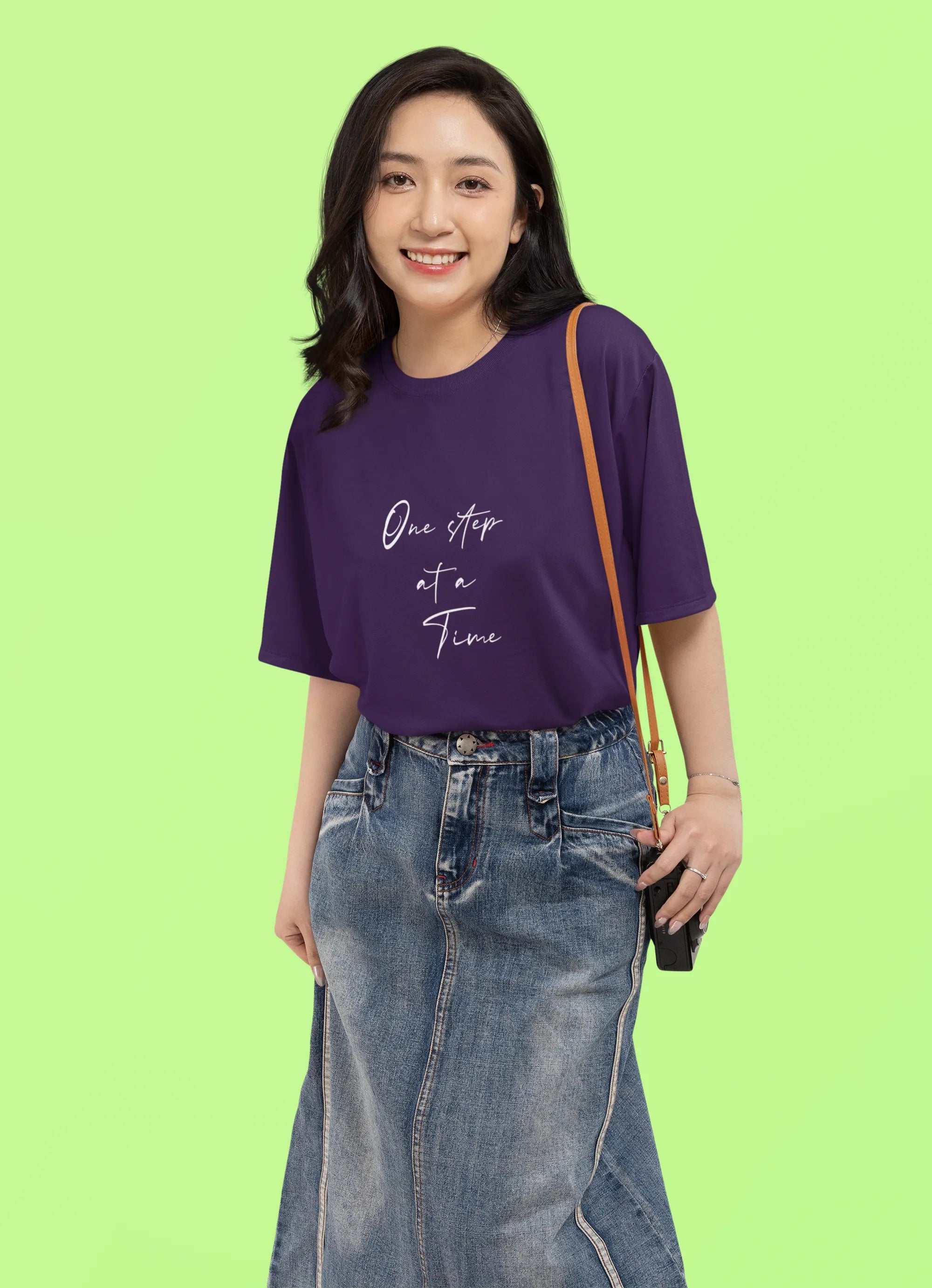 This T-shirt design gently encourages with the phrase One step at a time. Calm, steady, and uplifting, it symbolizes progress, patience, and personal growth. Perfect for anyone on a journey — reminding us that small steps lead to big changes.