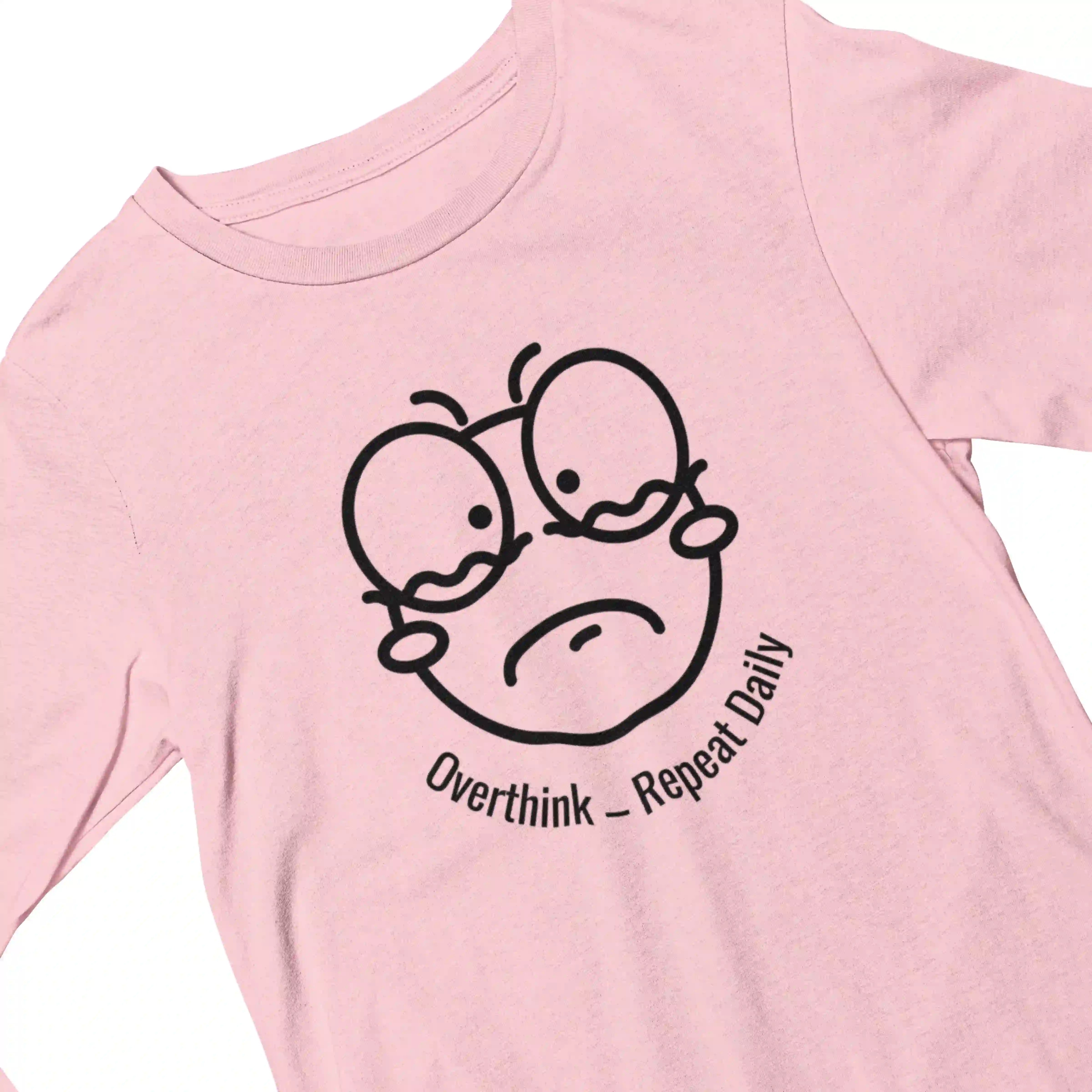 Soft yet expressive — the 'Overthink' light pink T-shirt reflects every thoughtful mood with charm and a touch of calm confidence.
