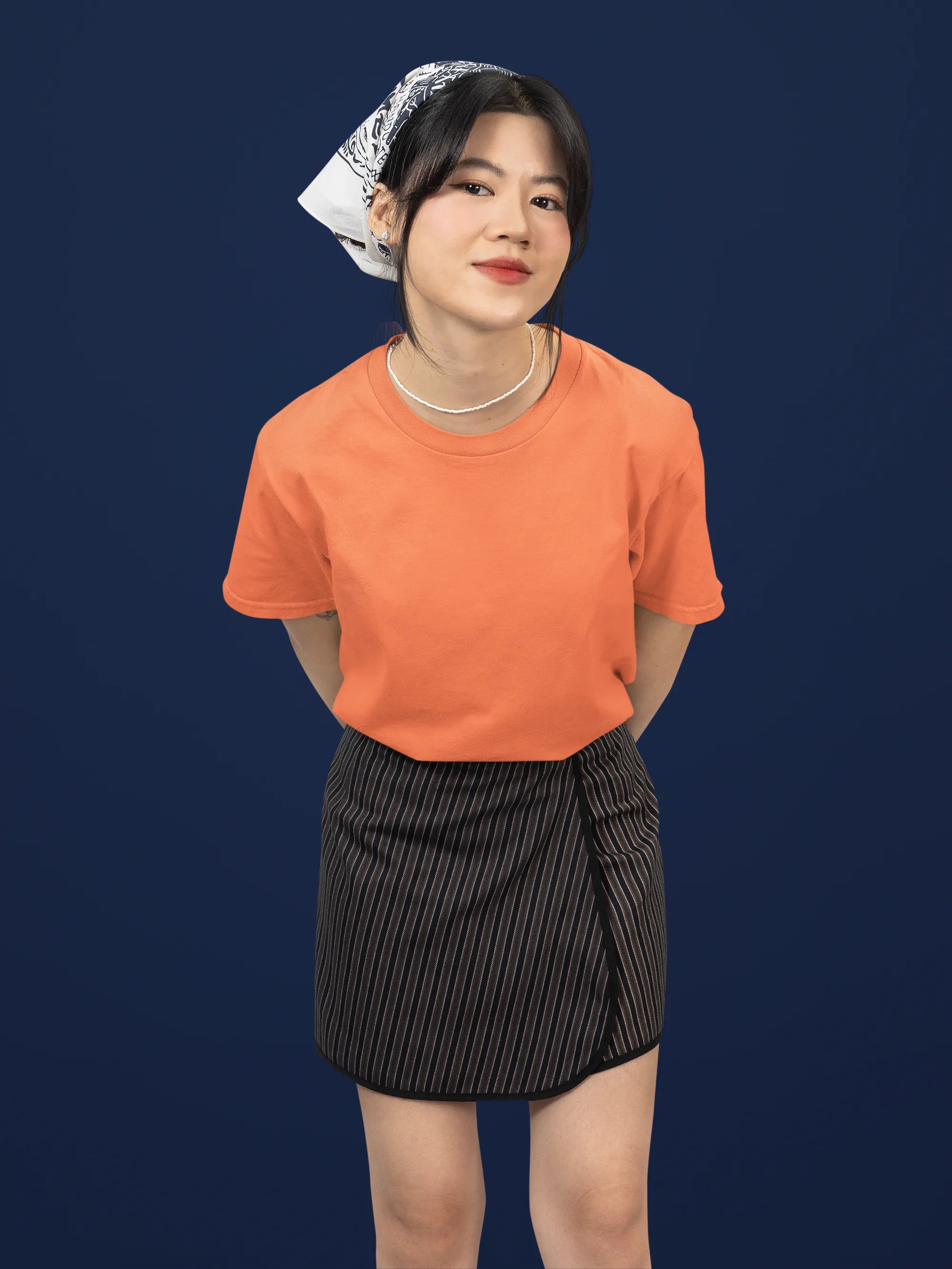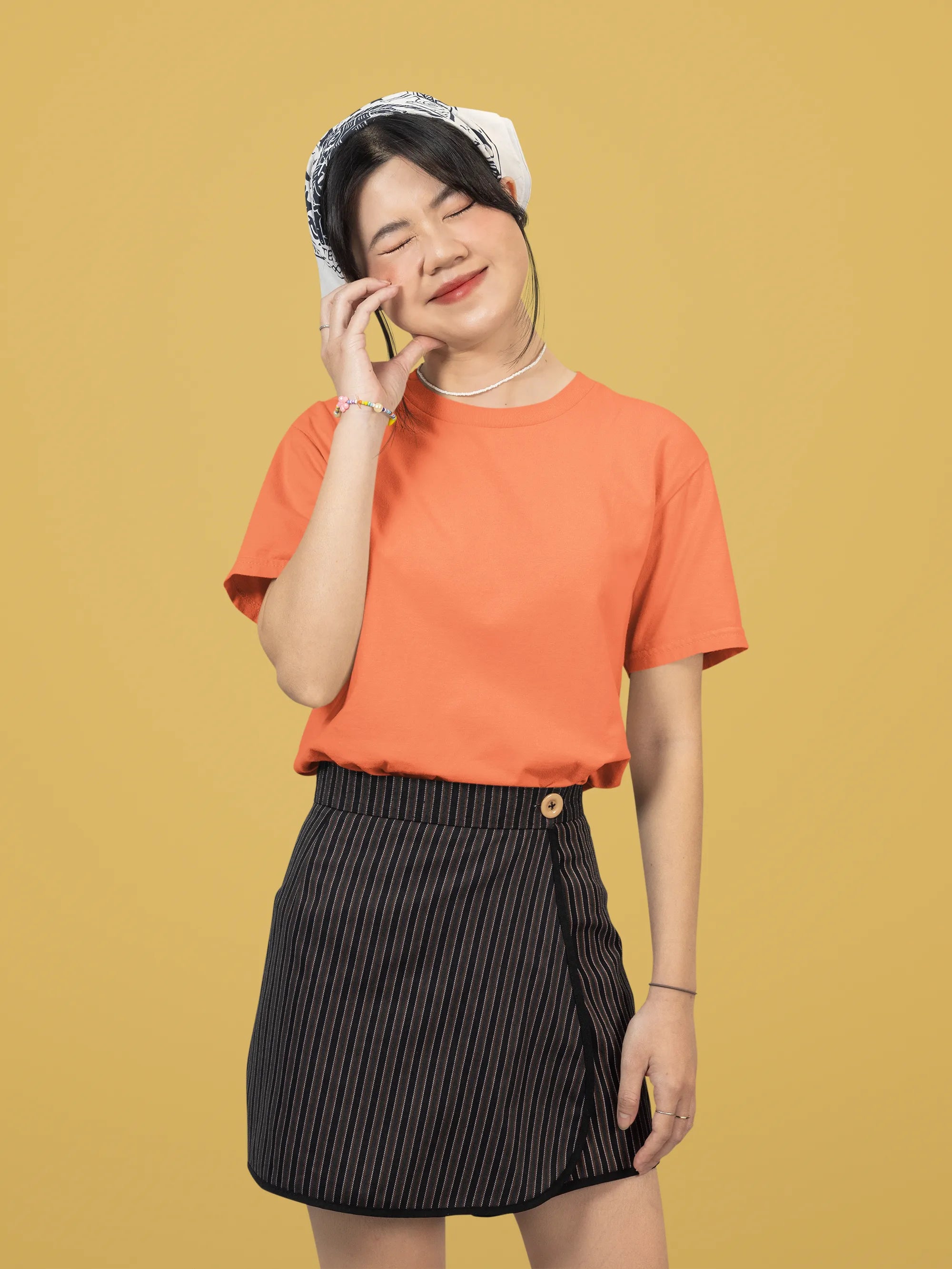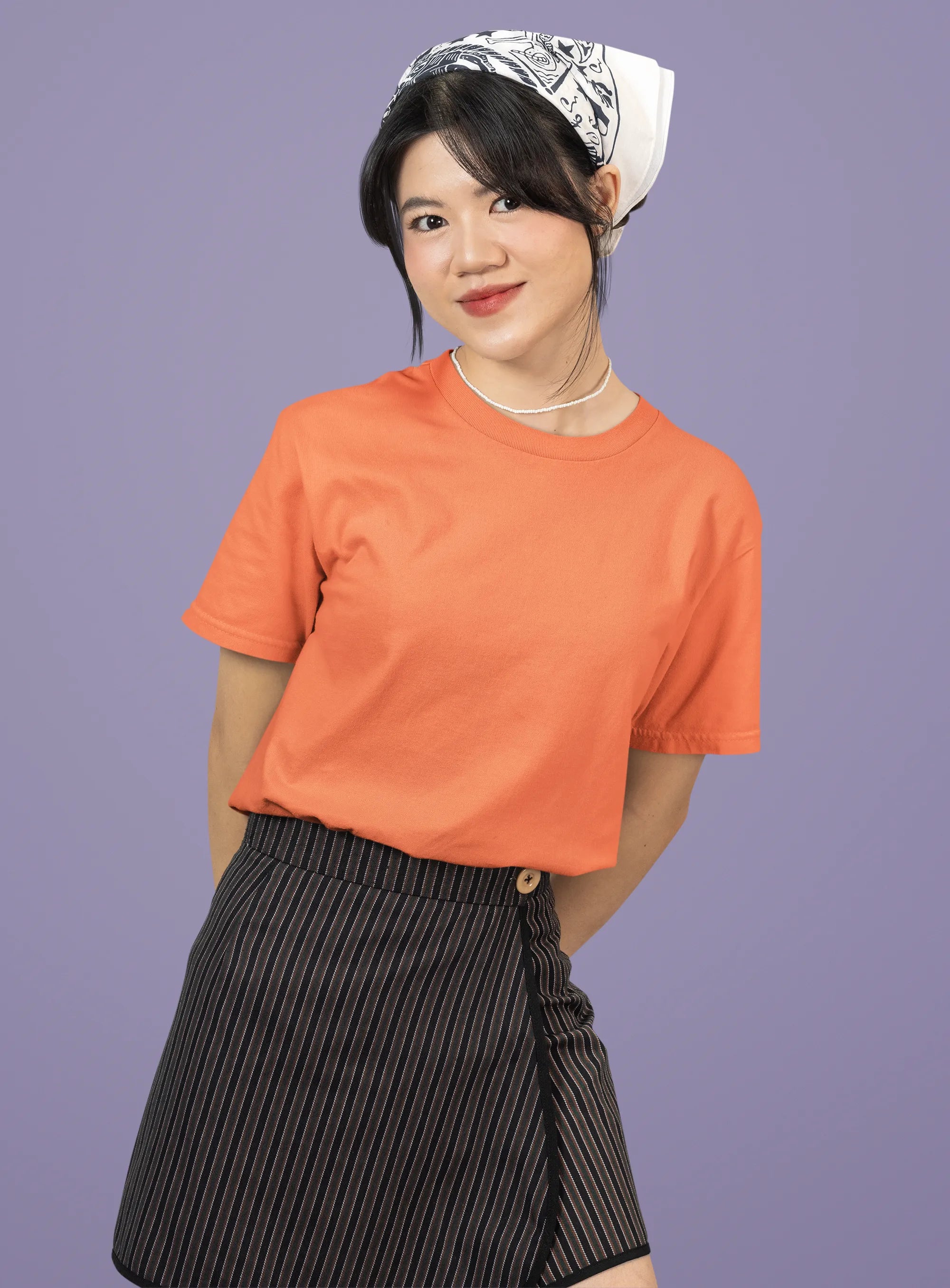 A minimalistic plain coral T-shirt with a soft, breathable fabric, offering a vibrant yet subtle look. Designed for casual comfort, it features a classic round neckline and short sleeves, making it a versatile wardrobe essential for effortless everyday styling.