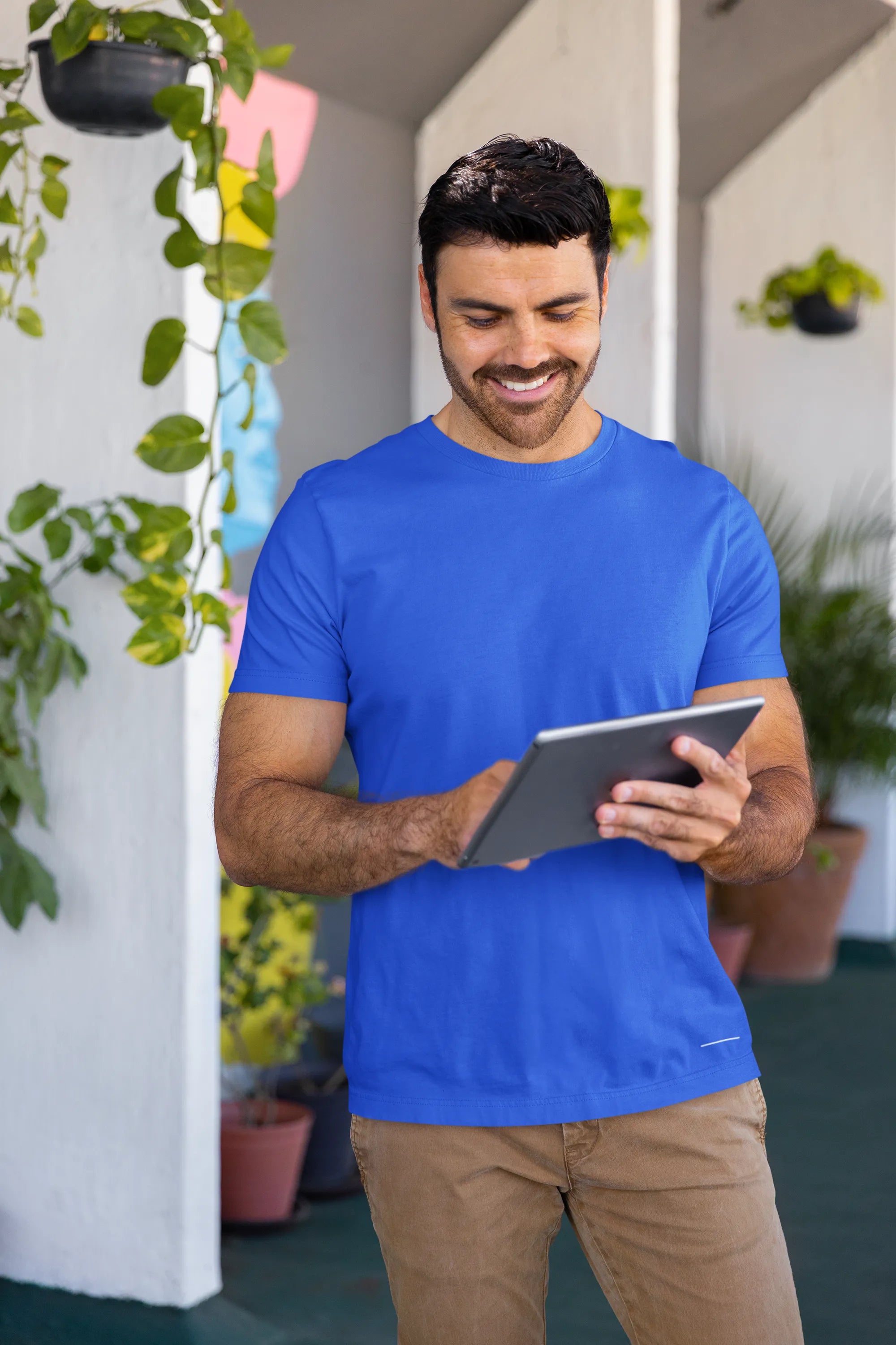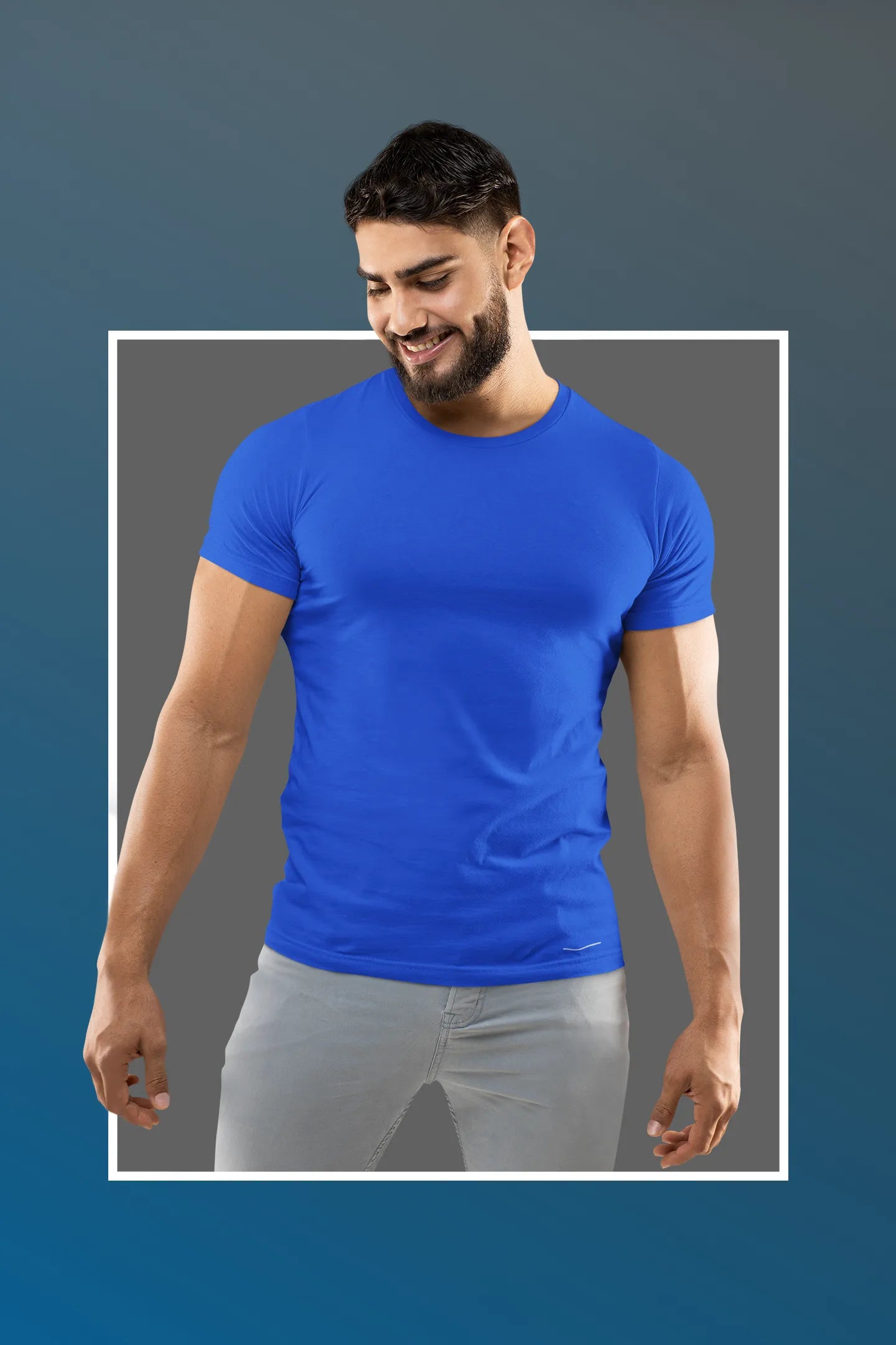 A classic plain royal blue T-shirt with a sleek, minimalist design. Made from soft, breathable fabric for all-day comfort. The rich, vibrant hue adds a touch of sophistication, making it perfect for casual wear or layering with any outfit.