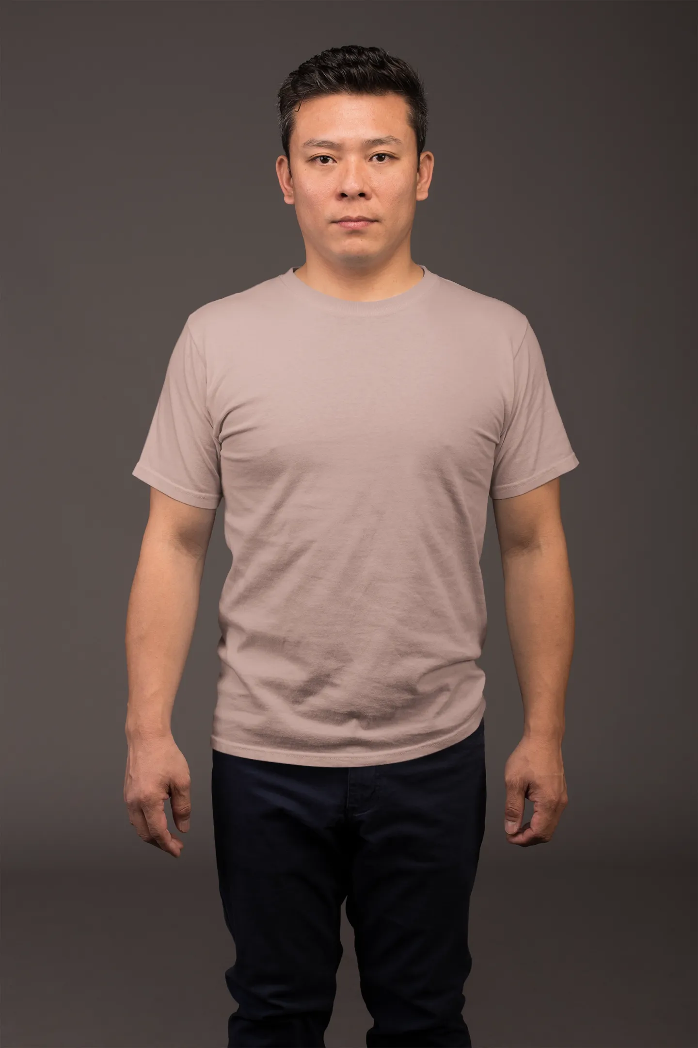 A classic plain Mushroom T-shirt with a bold, vibrant hue. Designed for comfort and versatility, it features a smooth, soft fabric, a round neckline, and a regular fit. Perfect for casual wear, layering, or making a simple yet strong statement.