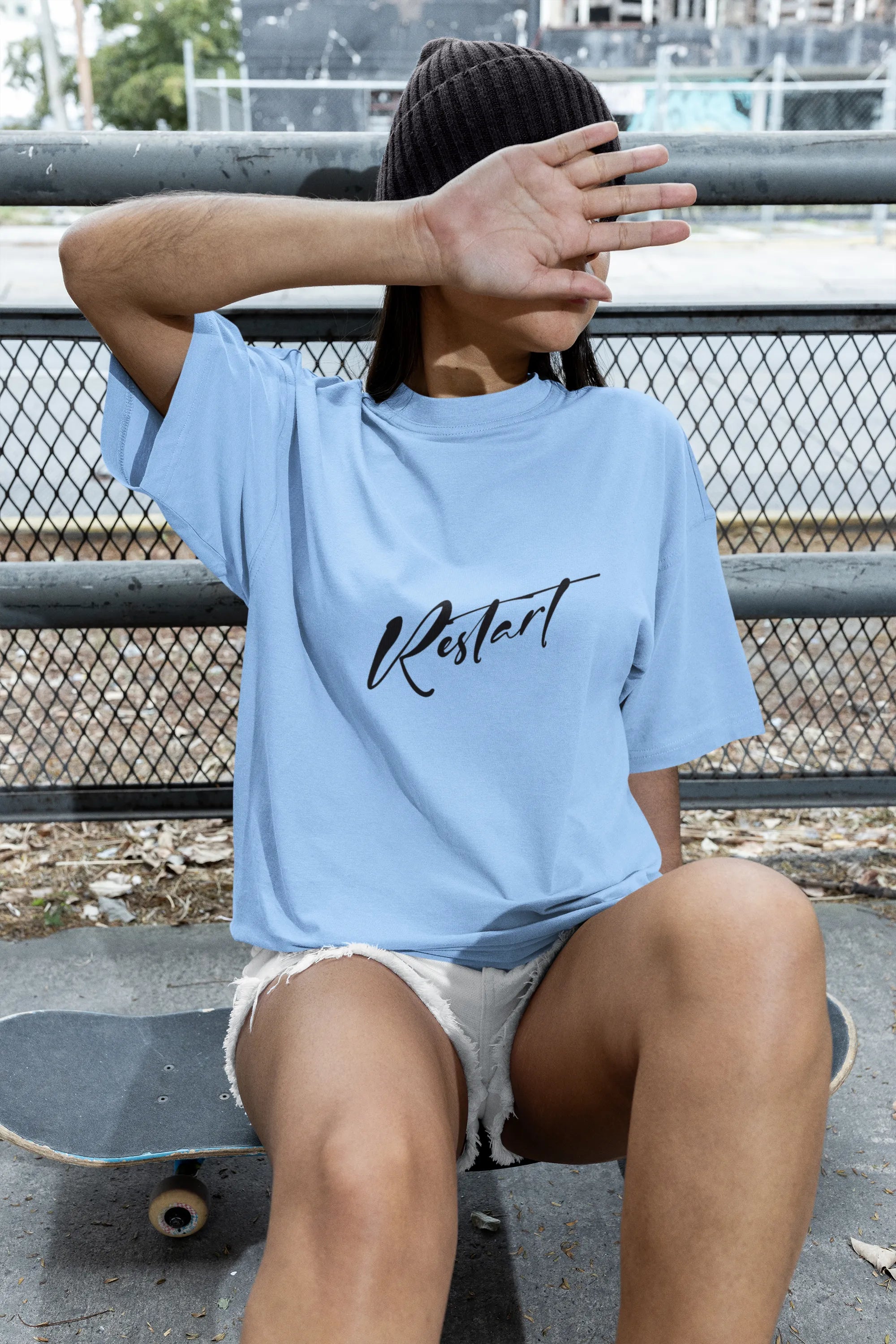 A fresh and inspiring T-shirt design featuring the word “Restart” in clean, modern typography. Symbolizing new beginnings and second chances, the design uses subtle, uplifting tones, perfect for those who believe in growth, resilience, and embracing life’s endless possibilities.