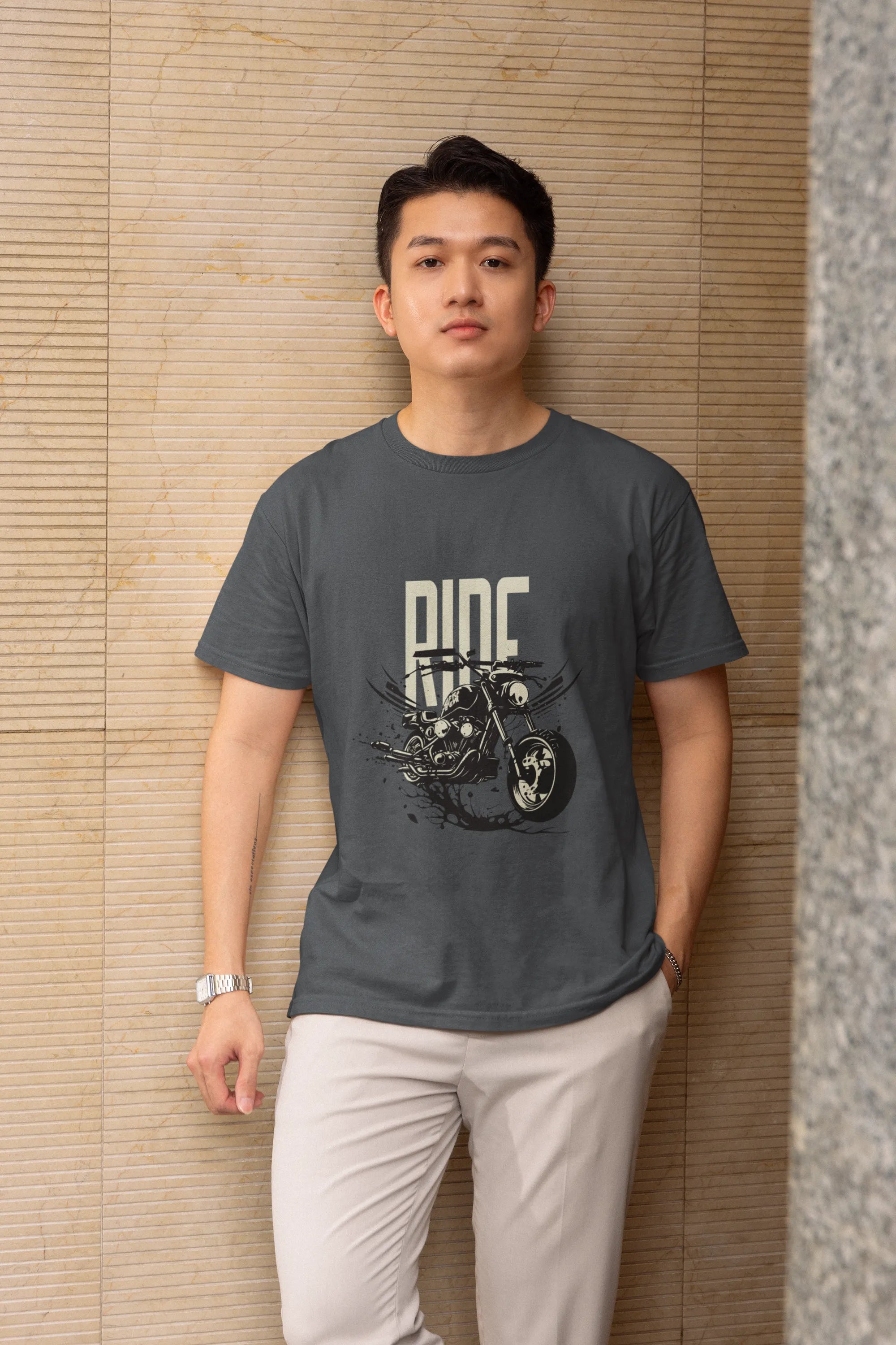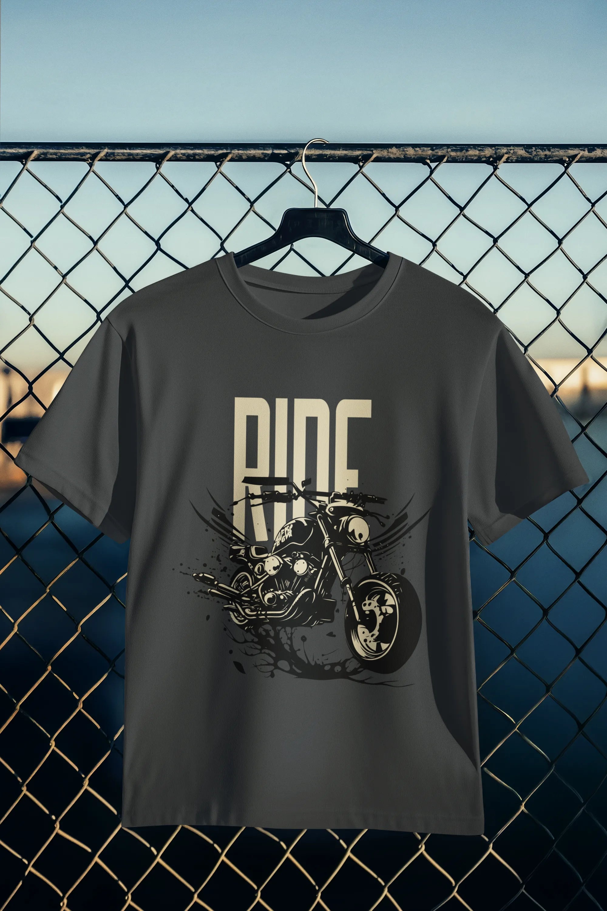 A sleek steel-grey t-shirt featuring a bold “Ride” design that inspires motion and freedom. With a regular fit and round neck, it combines comfort with confidence—perfect for bikers, adventurers, or anyone who loves an active, carefree vibe.