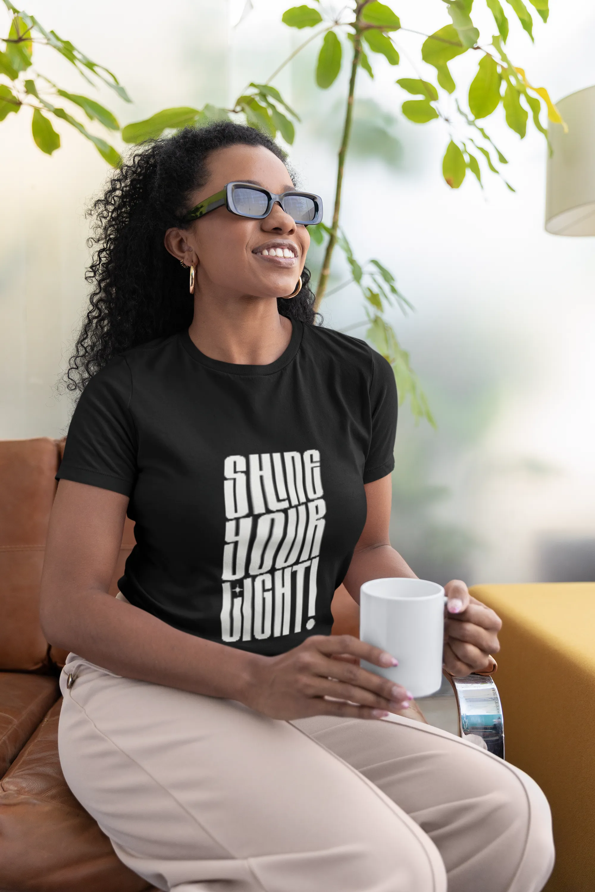 A radiant and uplifting T-shirt design featuring the phrase “Shine Your Light” in glowing, elegant typography. Accented with sunbursts, stars, or soft gradients, it symbolizes positivity, self-expression, and inner strength — perfect for those who inspire others simply by being themselves.