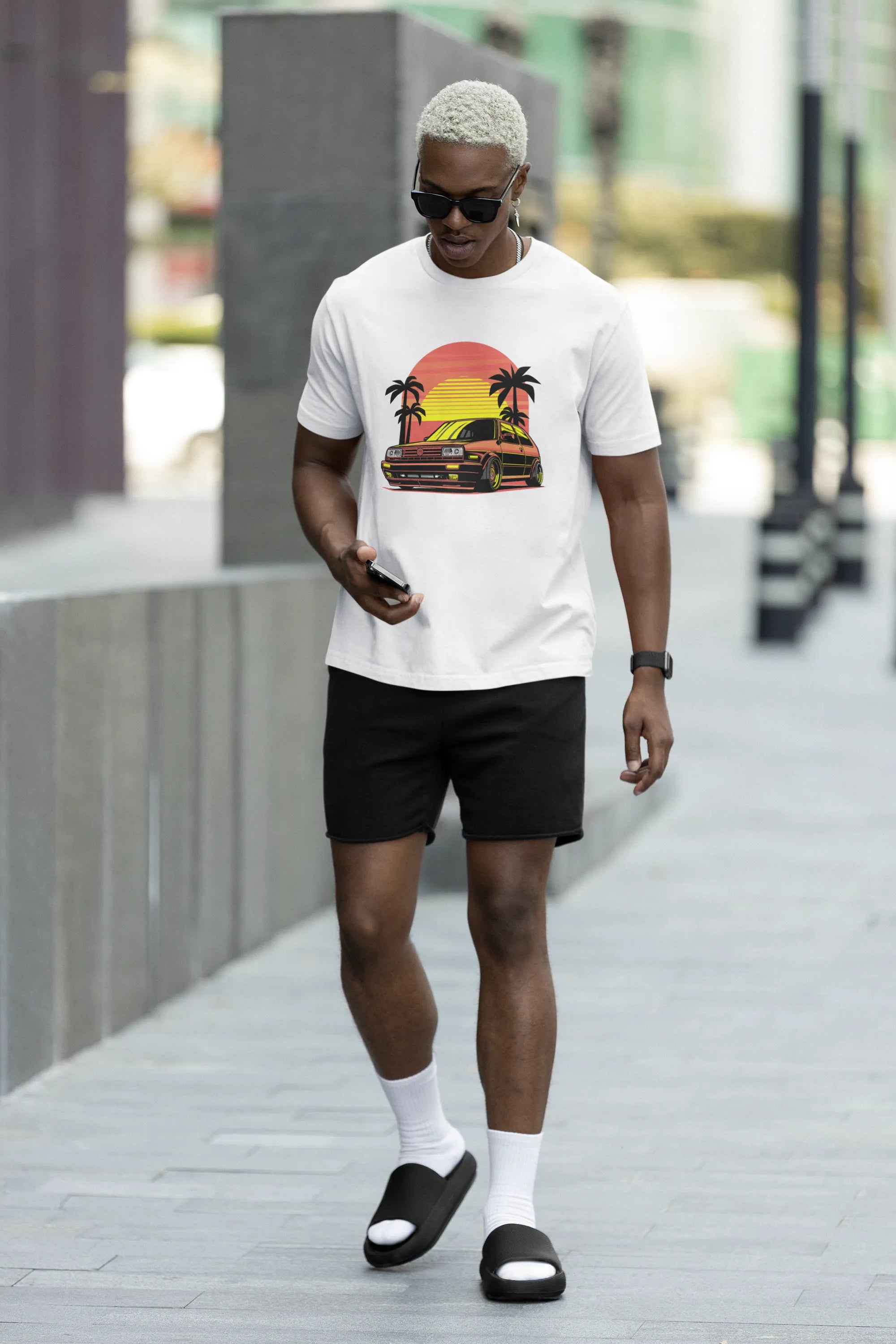 Capture golden hour vibes with the vibrant “Sunset Car” tee. A tribute to laid-back drives, coastal roads, and the freedom of dusk-to-dawn adventures, this design is made for dreamers on wheels.