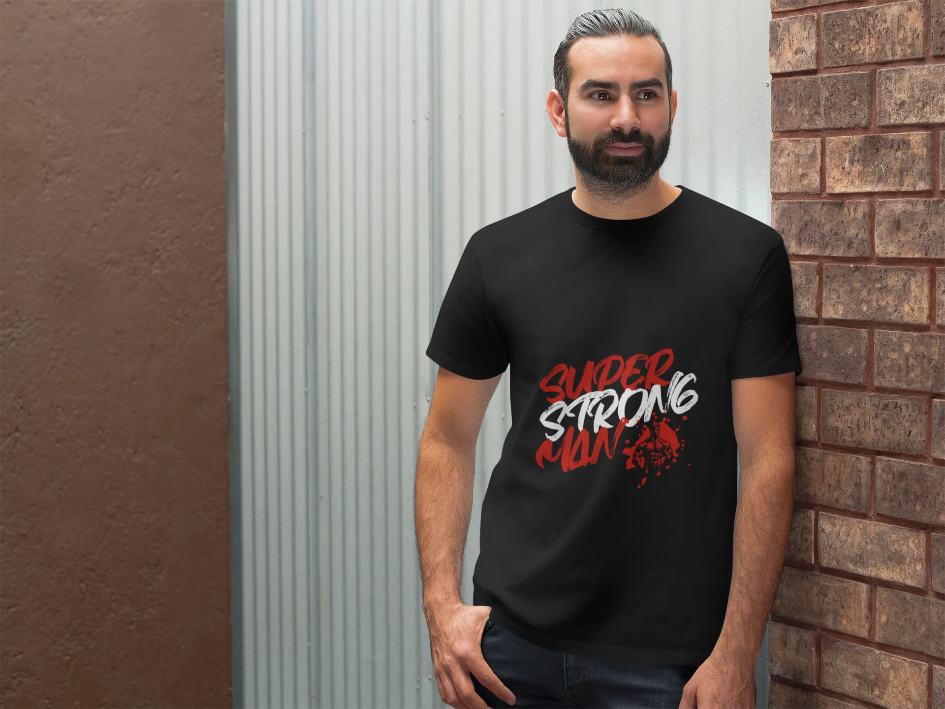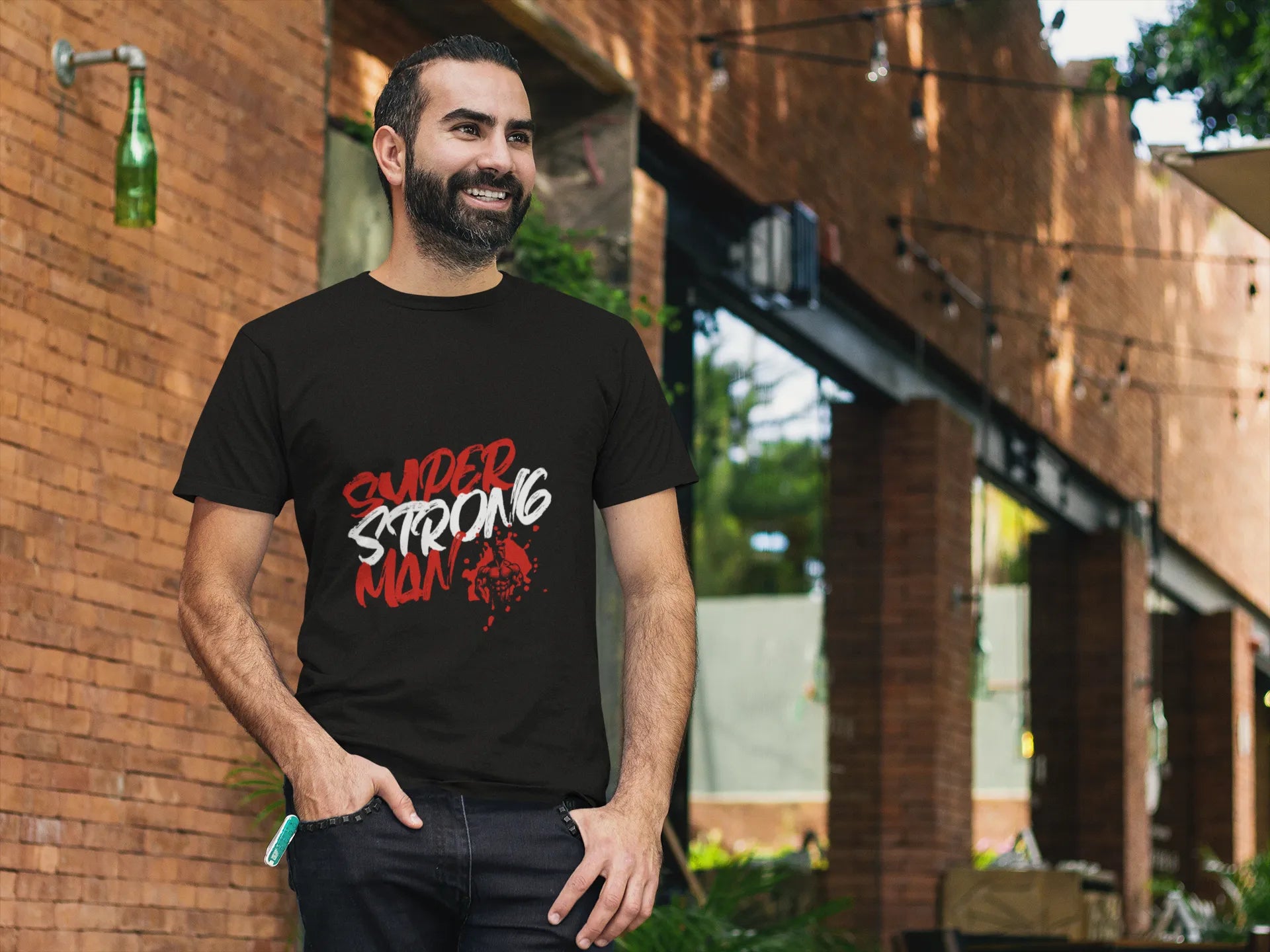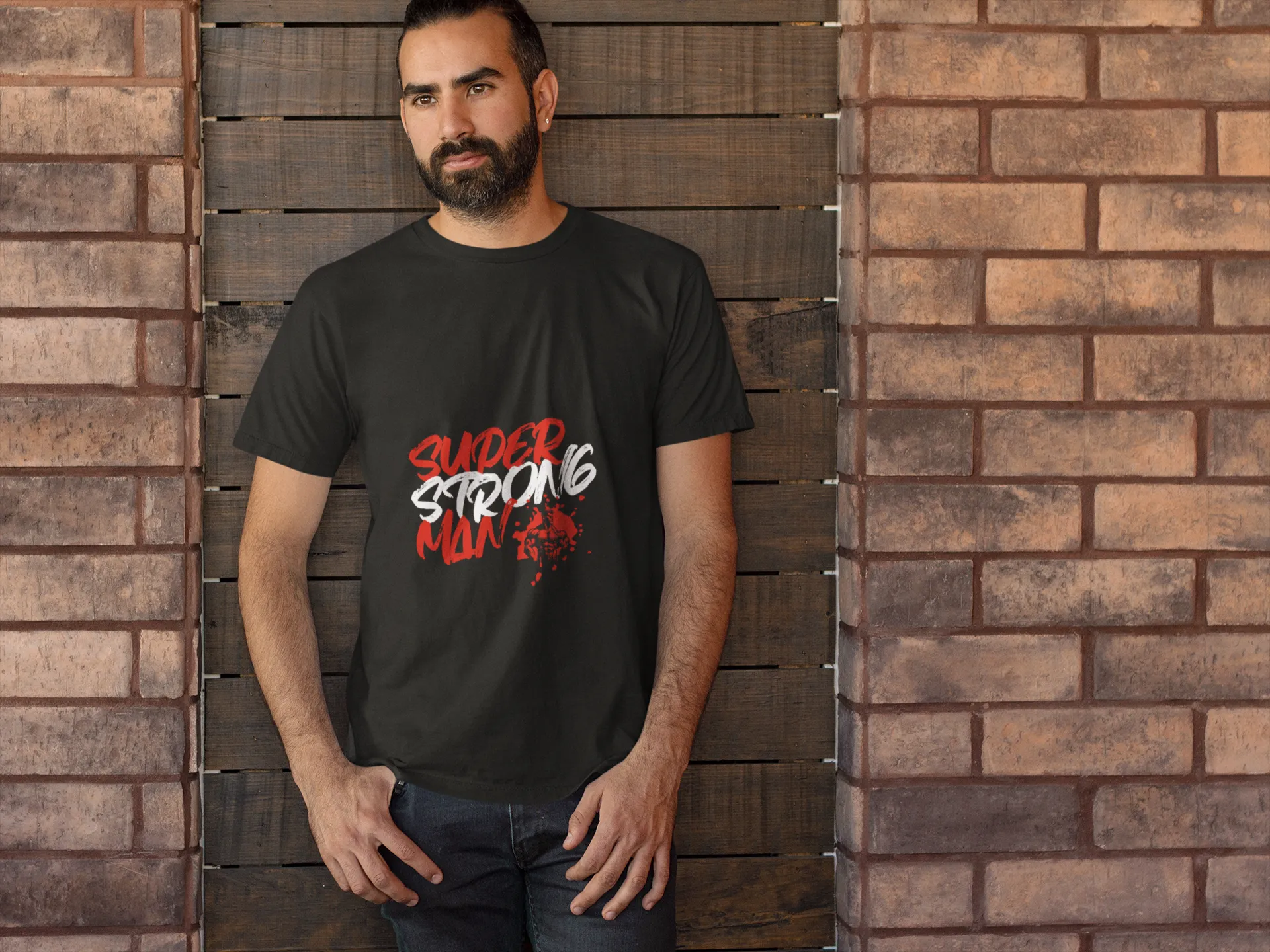 The "Super Strong Man" T-shirt design features a powerful, muscular figure showcasing strength and resilience. Bold typography, lightning effects, or a heroic stance enhance the dynamic look. Perfect for fitness enthusiasts, athletes, and superheroes at heart, this design symbolizes power, determination, and unstoppable energy.