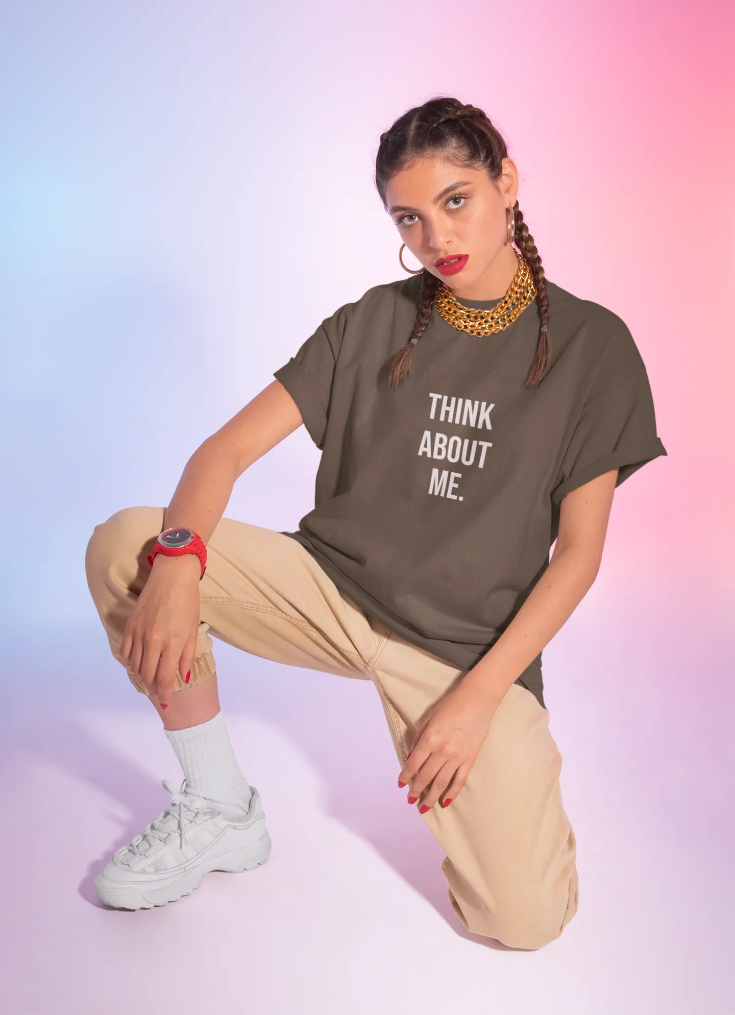 A bold “Think About Me” design that speaks mystery, confidence, and allure. With striking typography and subtle edge, it’s perfect for those who leave a lasting impression. Wear it to spark curiosity and remind the world—you’re unforgettable.
