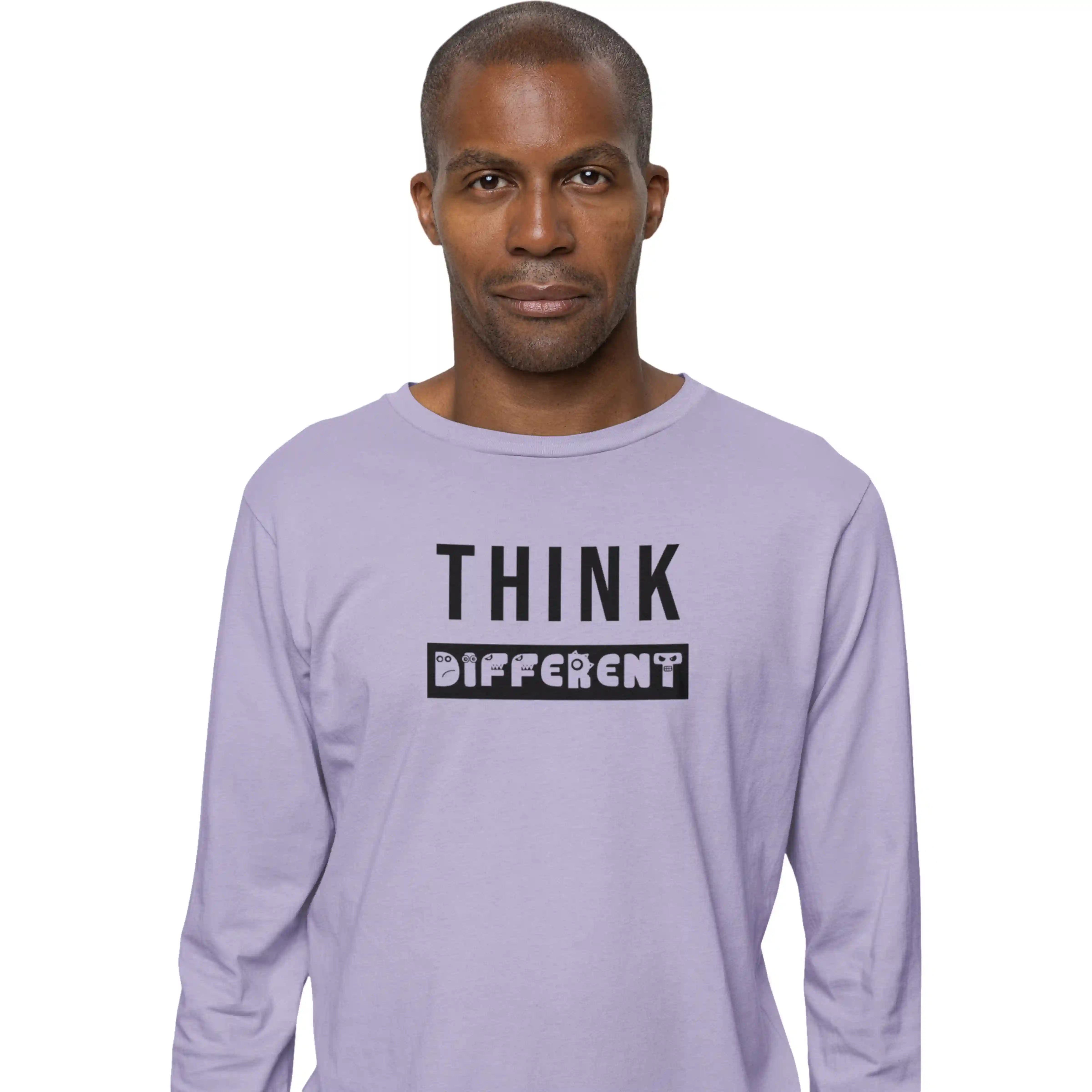 Stand out from the crowd with this lavender full-sleeve T-shirt featuring the bold quote “Think Different.” Its regular fit and round neck offer everyday comfort while inspiring creativity and individuality in style.