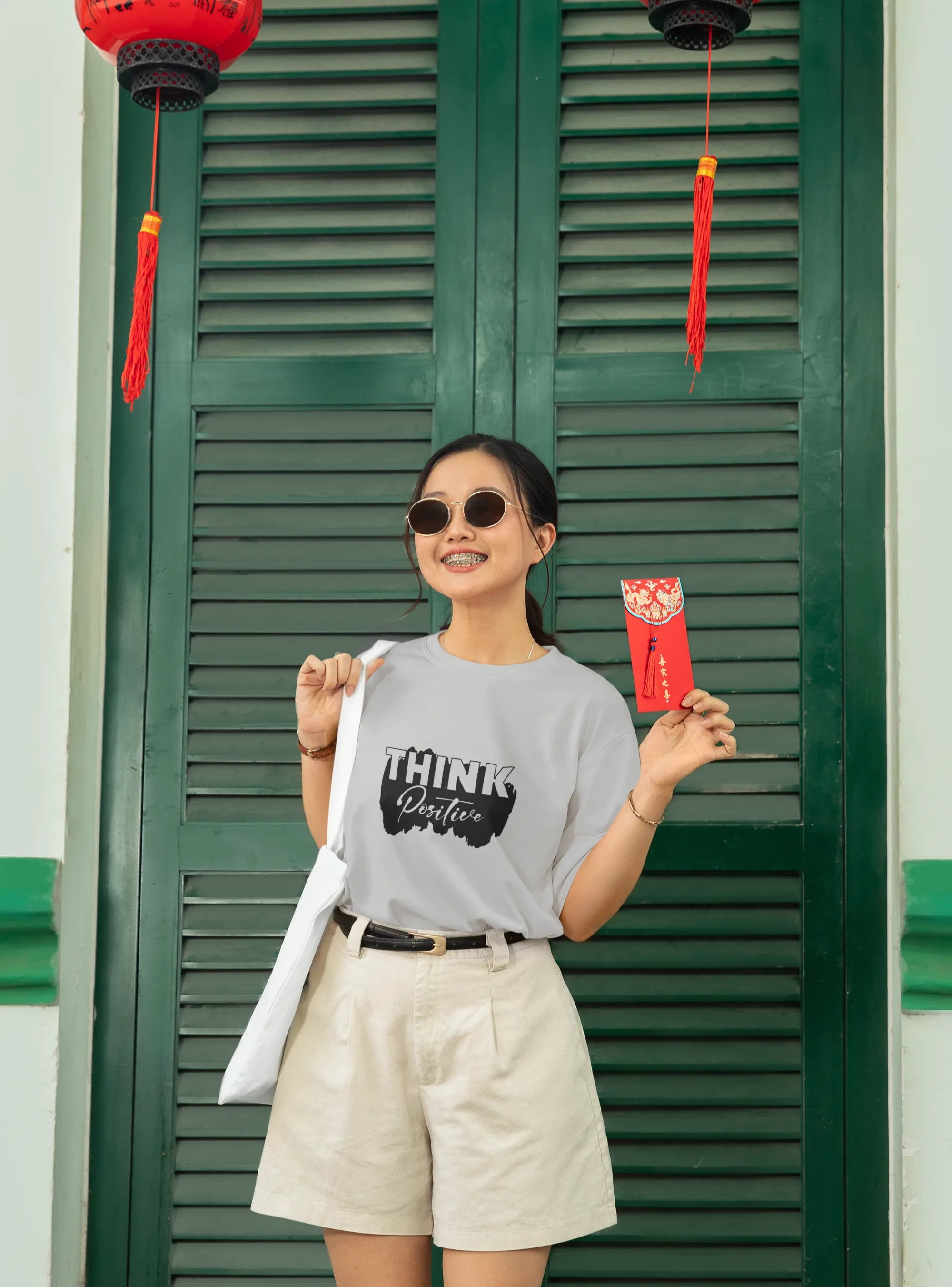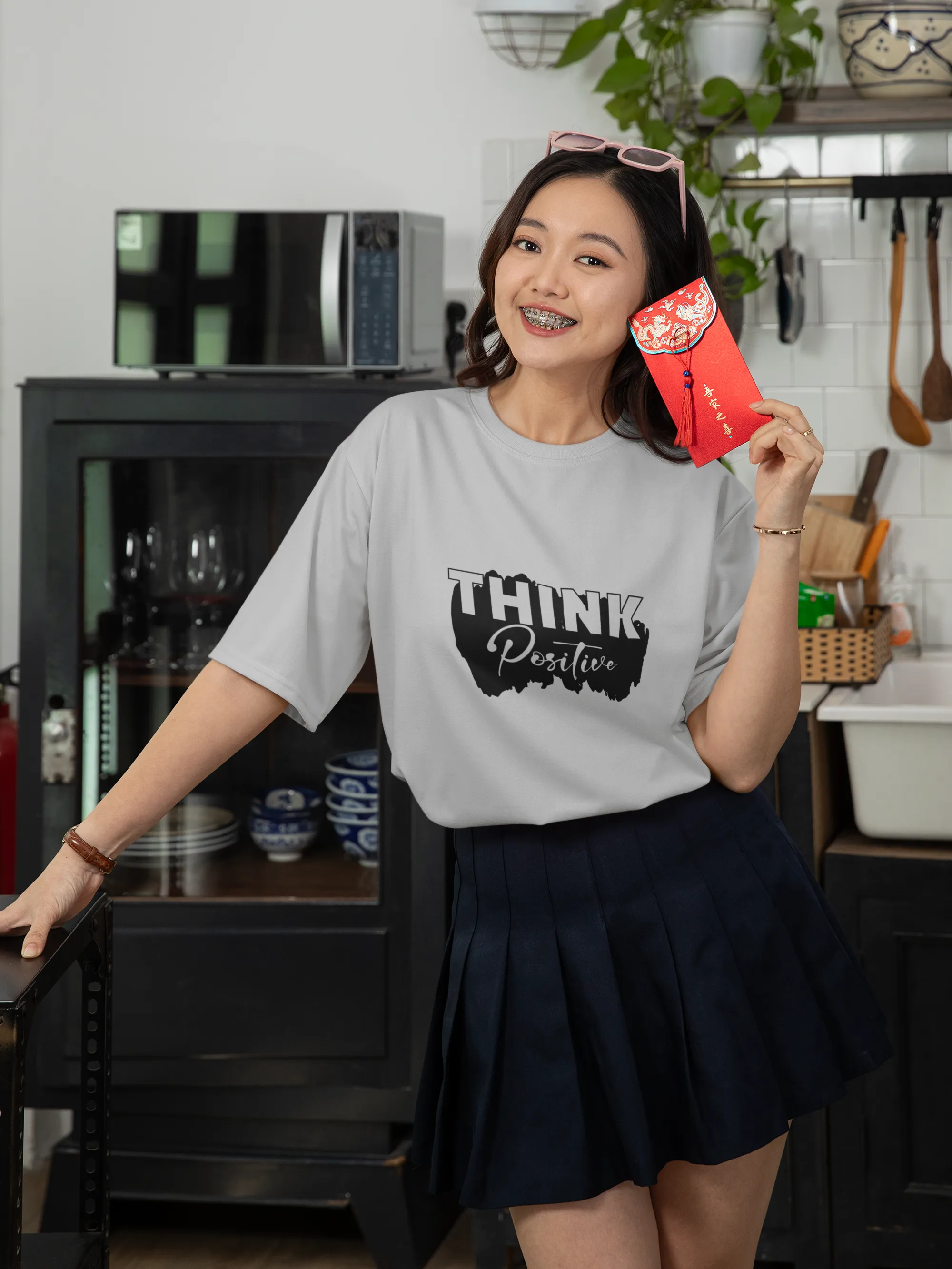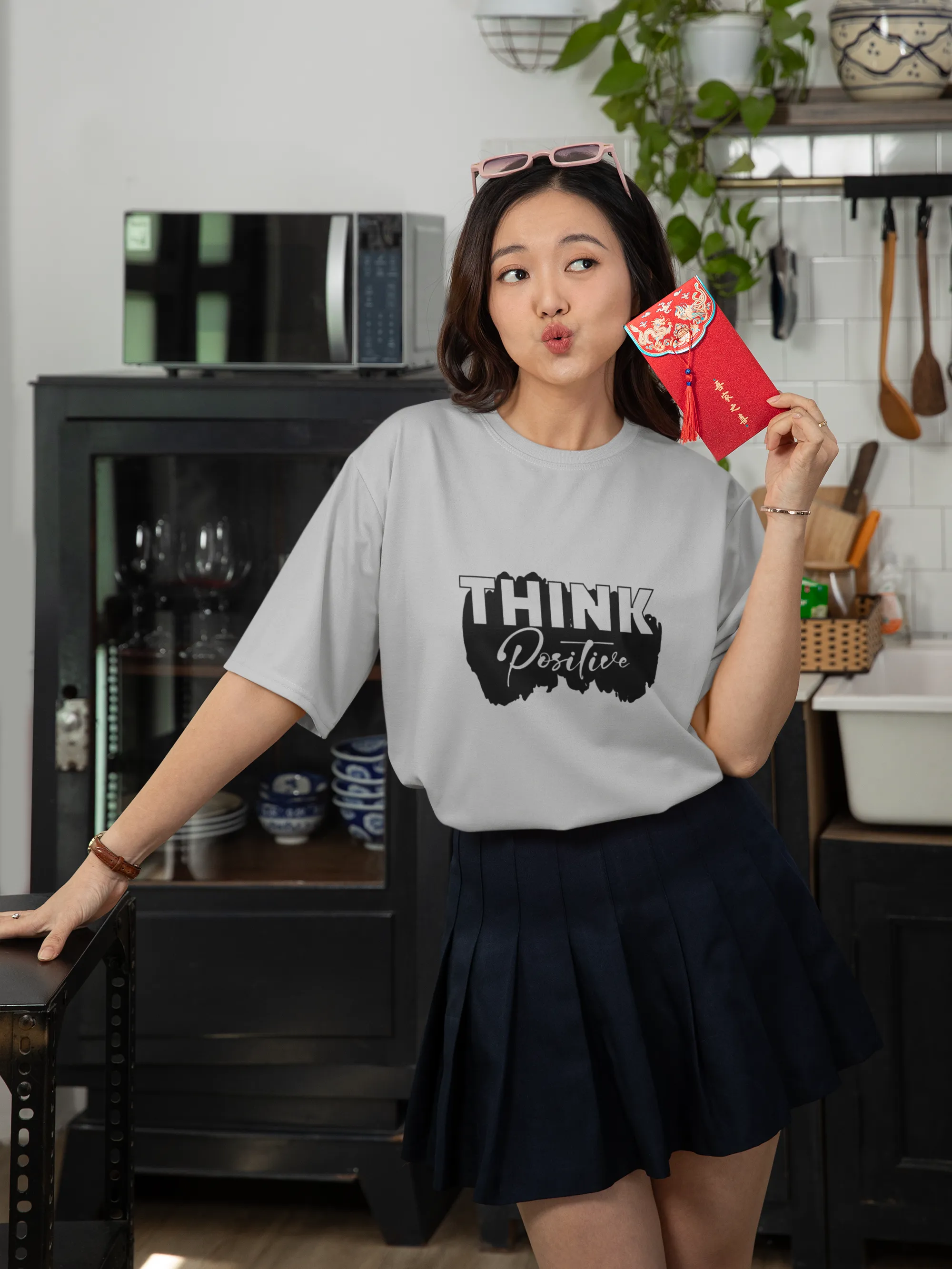 A bright and motivating T-shirt design featuring the phrase “Think Positive” in bold, uplifting typography. Vibrant colors and energetic design elements reflect optimism and hope, making it perfect for those who believe in spreading positivity, resilience, and a can-do attitude.