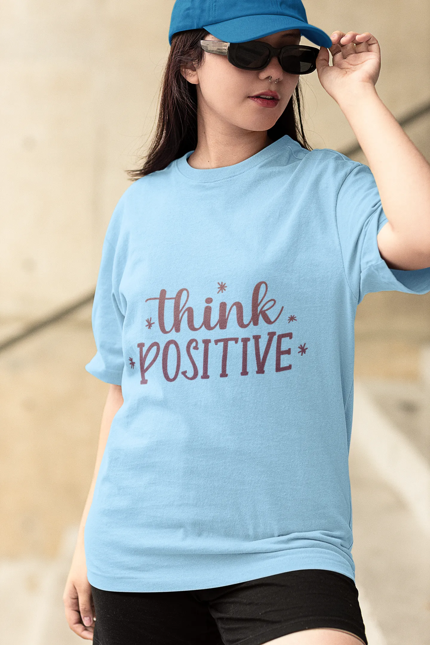 A minimal yet powerful T-shirt design featuring "Think Positive" in bold, modern typography. Accented with uplifting colors, subtle gradients, or a light bulb icon symbolizing ideas. The design radiates optimism, inspiring confidence and a positive mindset wherever you go.