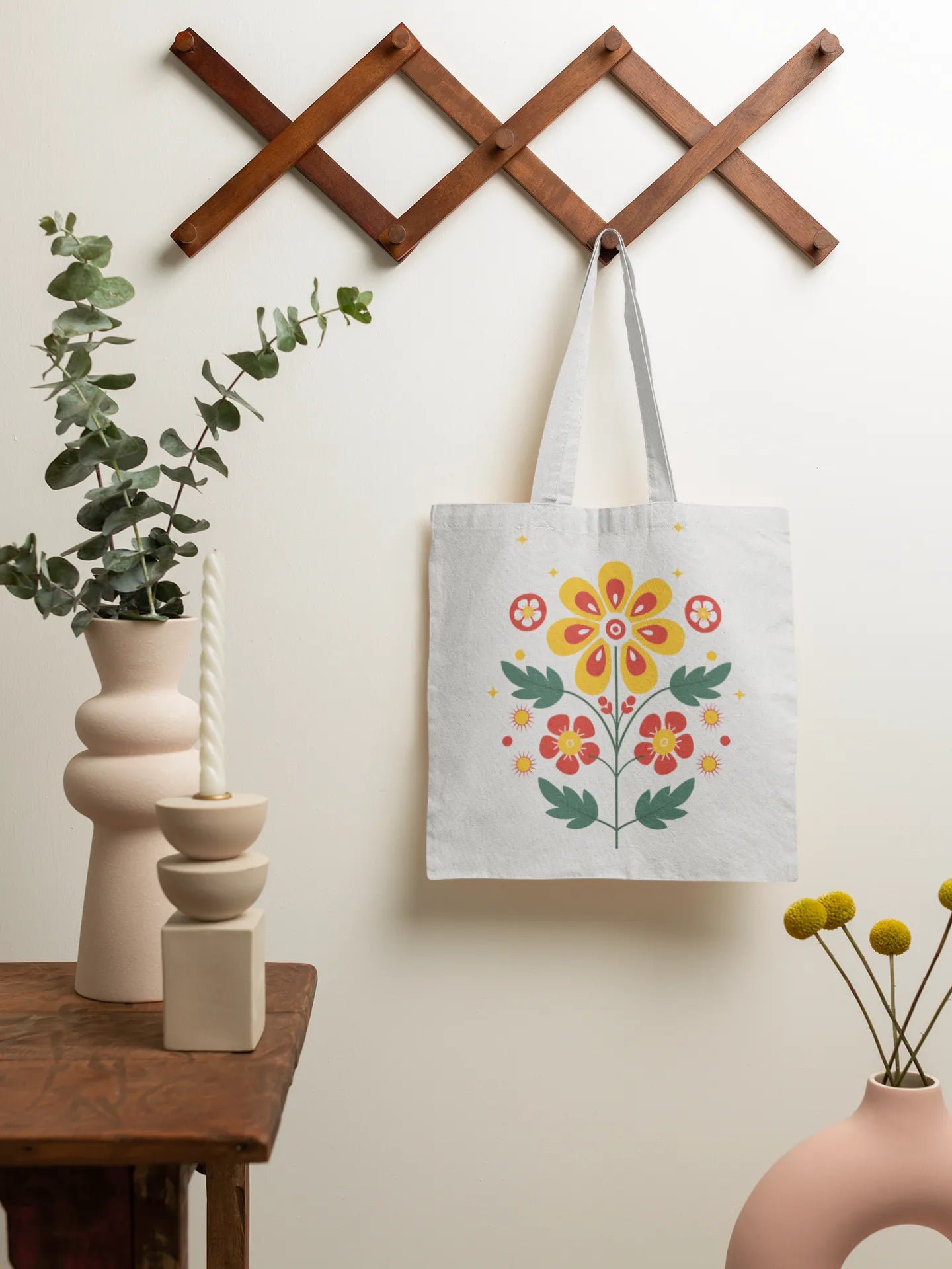 This Yellow Flower Tote Bag is perfect for spring and summer outings. Made with a durable canvas material, it features a stunning yellow flower design that adds a touch of brightness to any outfit. With its spacious interior and comfortable handles, it's both stylish and practical.