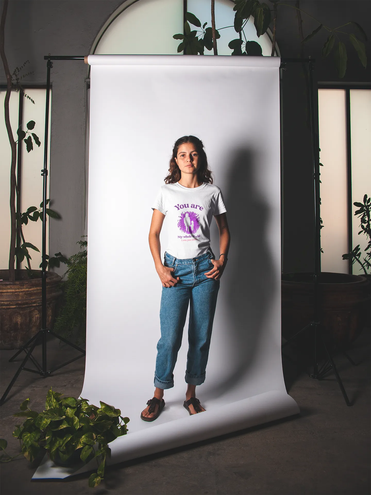 A deeply romantic and heartfelt T-shirt design featuring the phrase “You Are My Whole World” in elegant, flowing typography. Surrounded by a globe, stars, or heart motifs, it symbolizes love, devotion, and connection — perfect for expressing how much someone truly means to you.