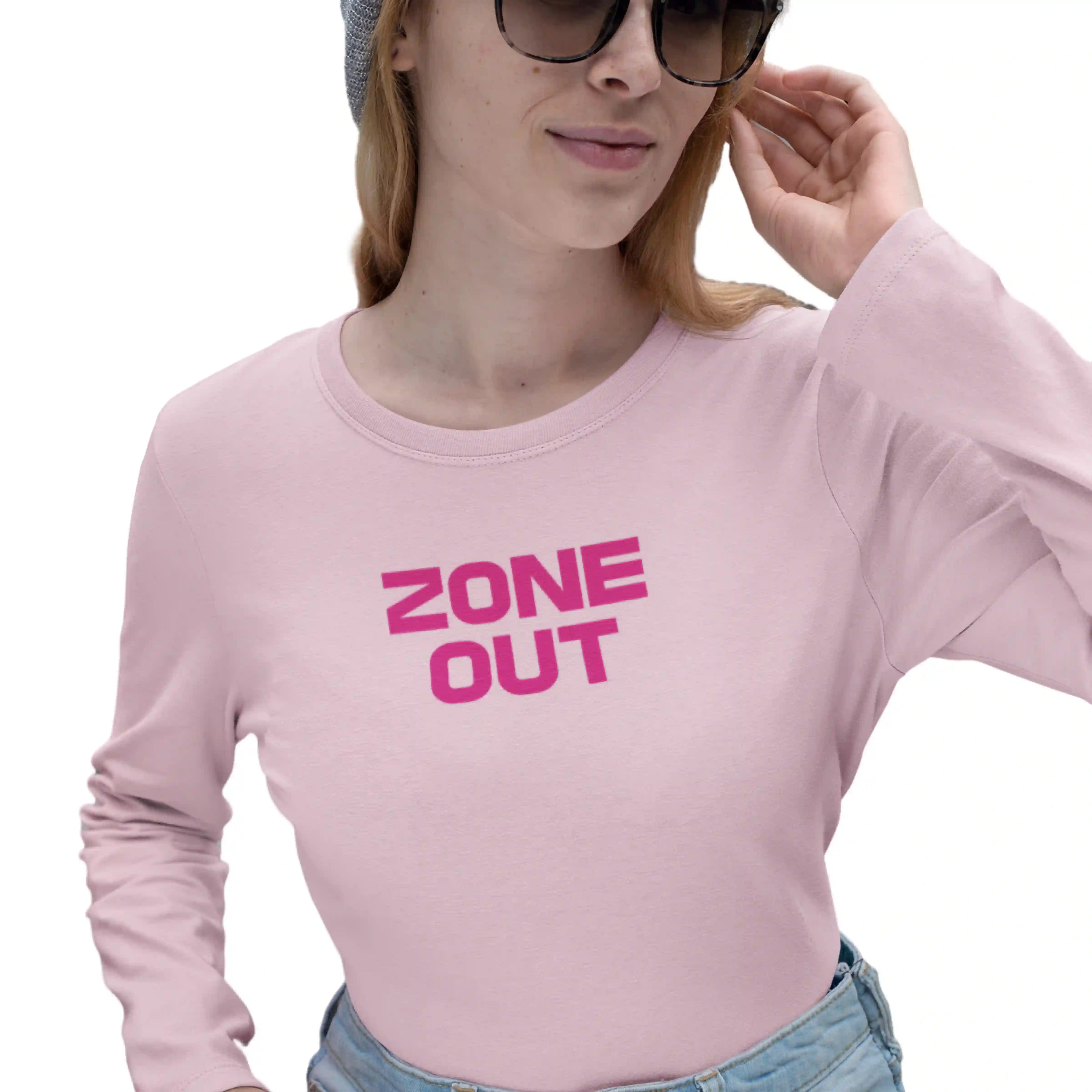 Relax in style with this light pink full-sleeve T-shirt featuring a cool “Zone Out” print. Made for a comfortable regular fit with a round neck, it reflects calm, carefree energy—perfect for casual days and laid-back moods.